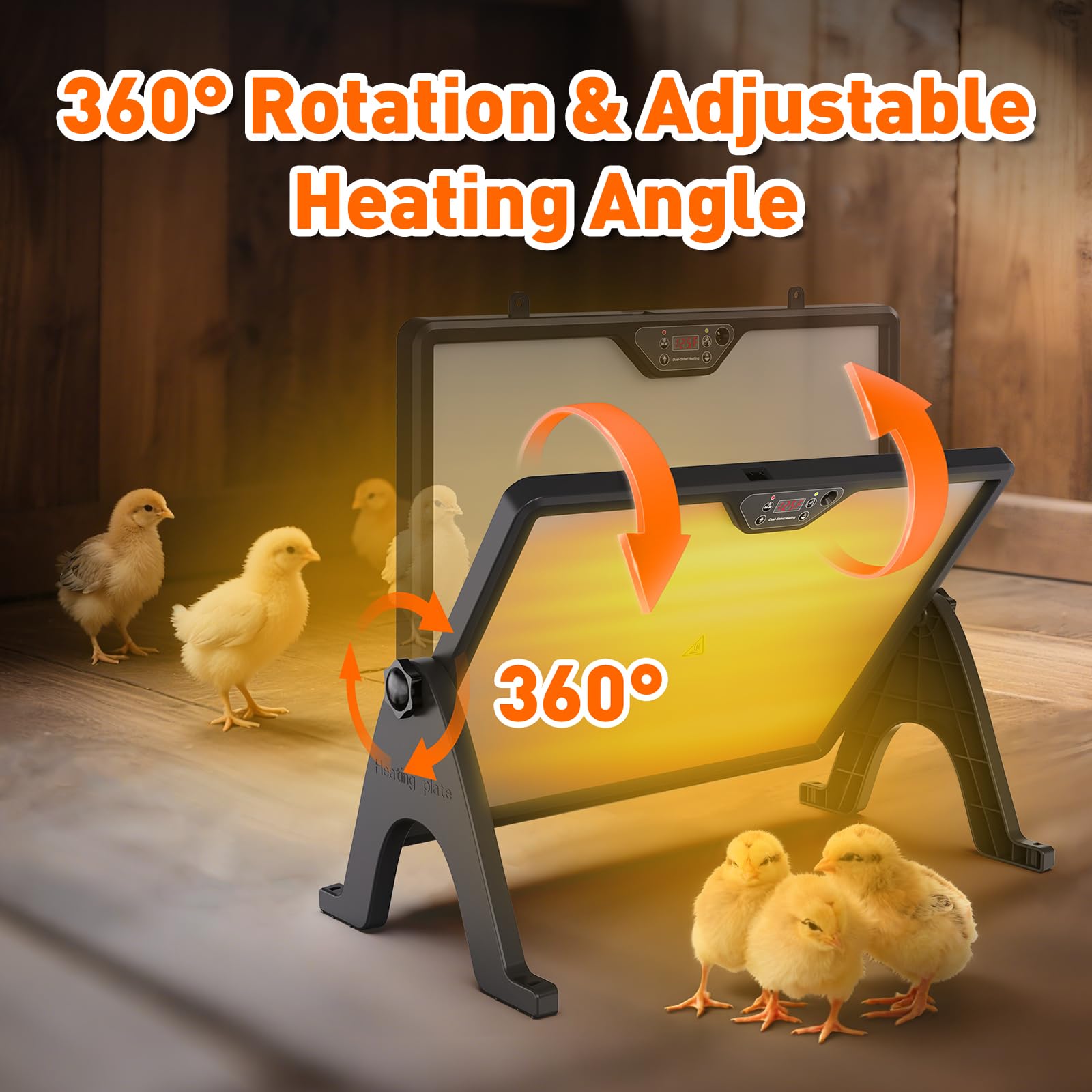 - 【Precision Temp Control Brooder Heat Plate】This brooder heater for chicks offers precise temperature control (86°F-167°F / 30°-75°C) for chick comfort and health. A built-in overheat shutoff ensures the safety of the chicken house. Featuring cycle heating modes (0/6/8/10/12 hours), this heat plate for baby chicks maintains a constant coop temperature, ideal for outdoor use and cold winters