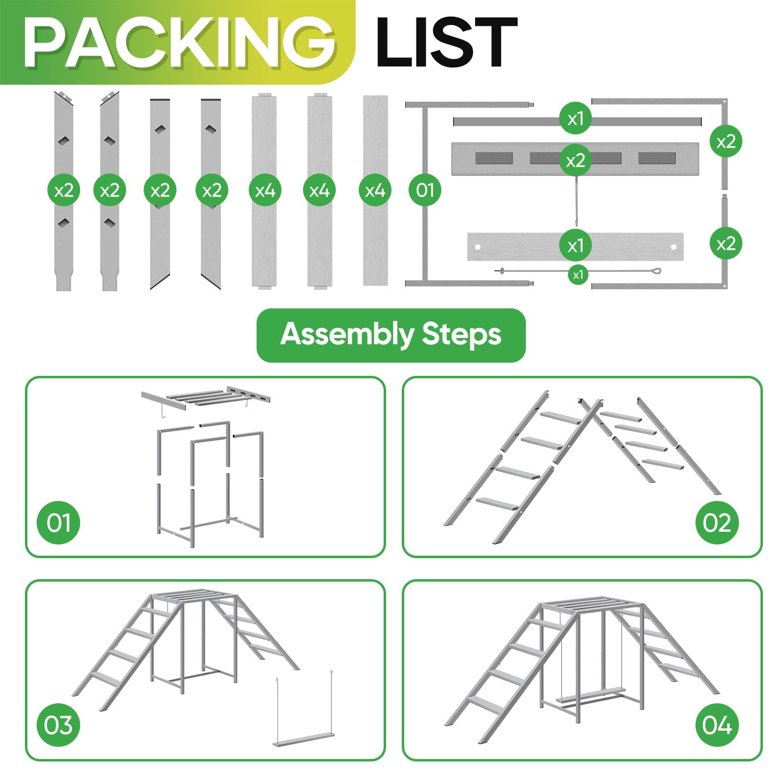Chicken Coop Perches with Swing, Chicken Roosting Bars, Chicken Run Accessories Toy, Wooden Ladder for Pet's Healthy & Happy, Sturdy and Easy to Clean, Suitable for Backyard Farm,Gray