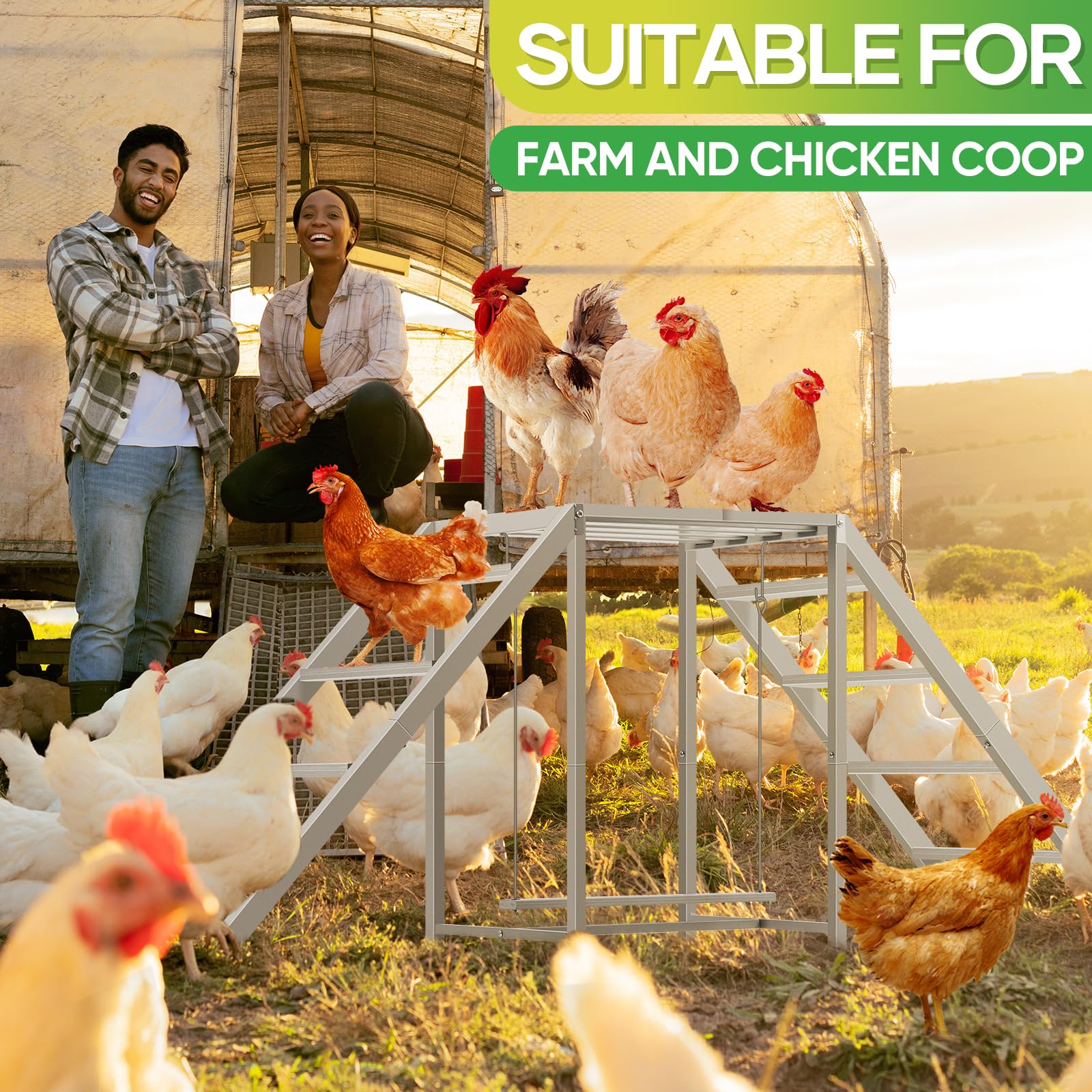 - Wooden + Metal Chicken Perch Size:67.1"Lx15.3W"X26.6H", With one big platform, one long swing and two sides ladder, gives the chickens a space to rest and exercise in the chicken coop. the chicken roost suitable for 6-8 chickens.Excellent addition to your chicken coop accessories