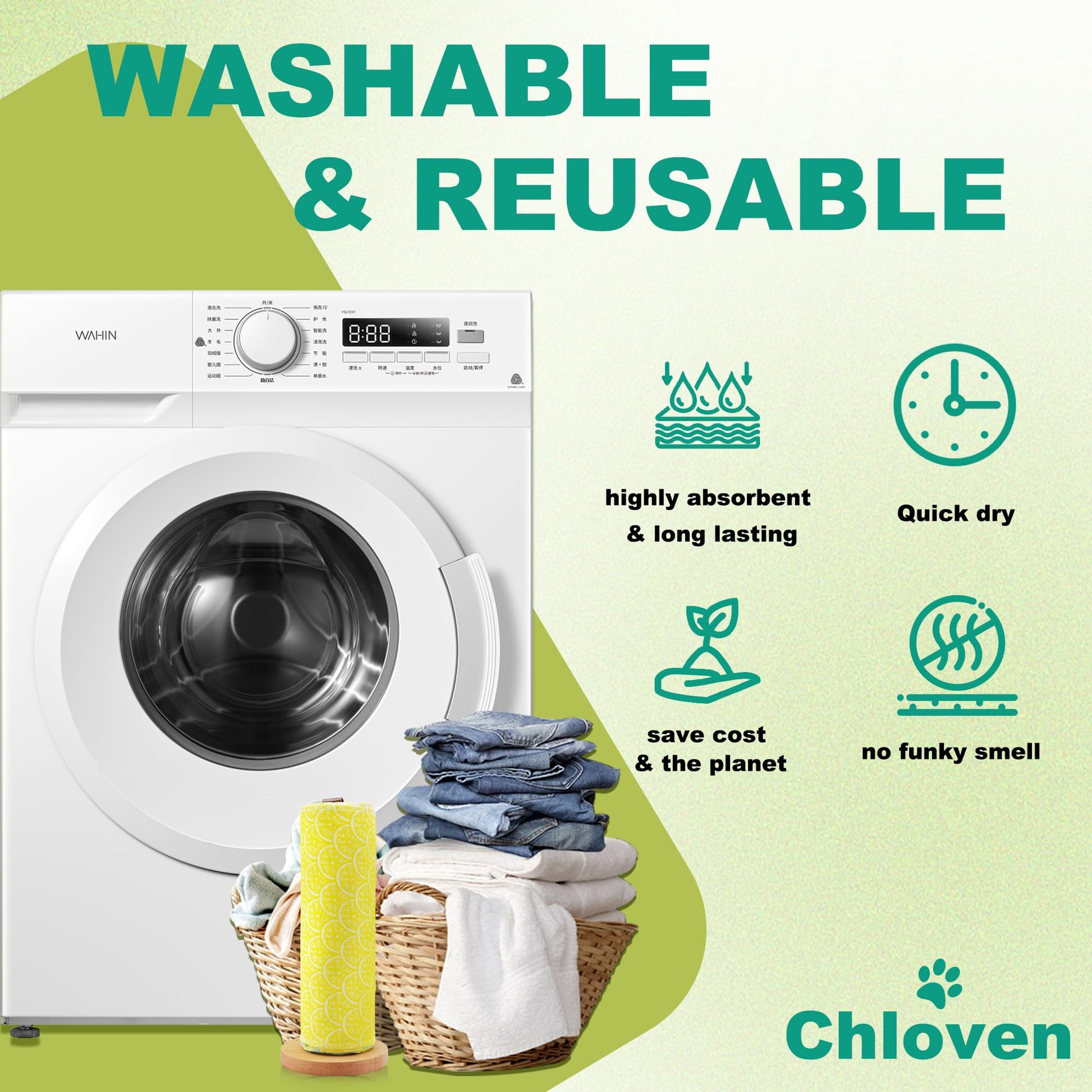 - 【VERSATILE & LONG-LASTING】Our reusable paper towel can be used in a variety of ways, from cleaning up messes in the kitchen to wiping down your baby's high chair. It can be washed and reused over and over again for maximum convenience and value.
