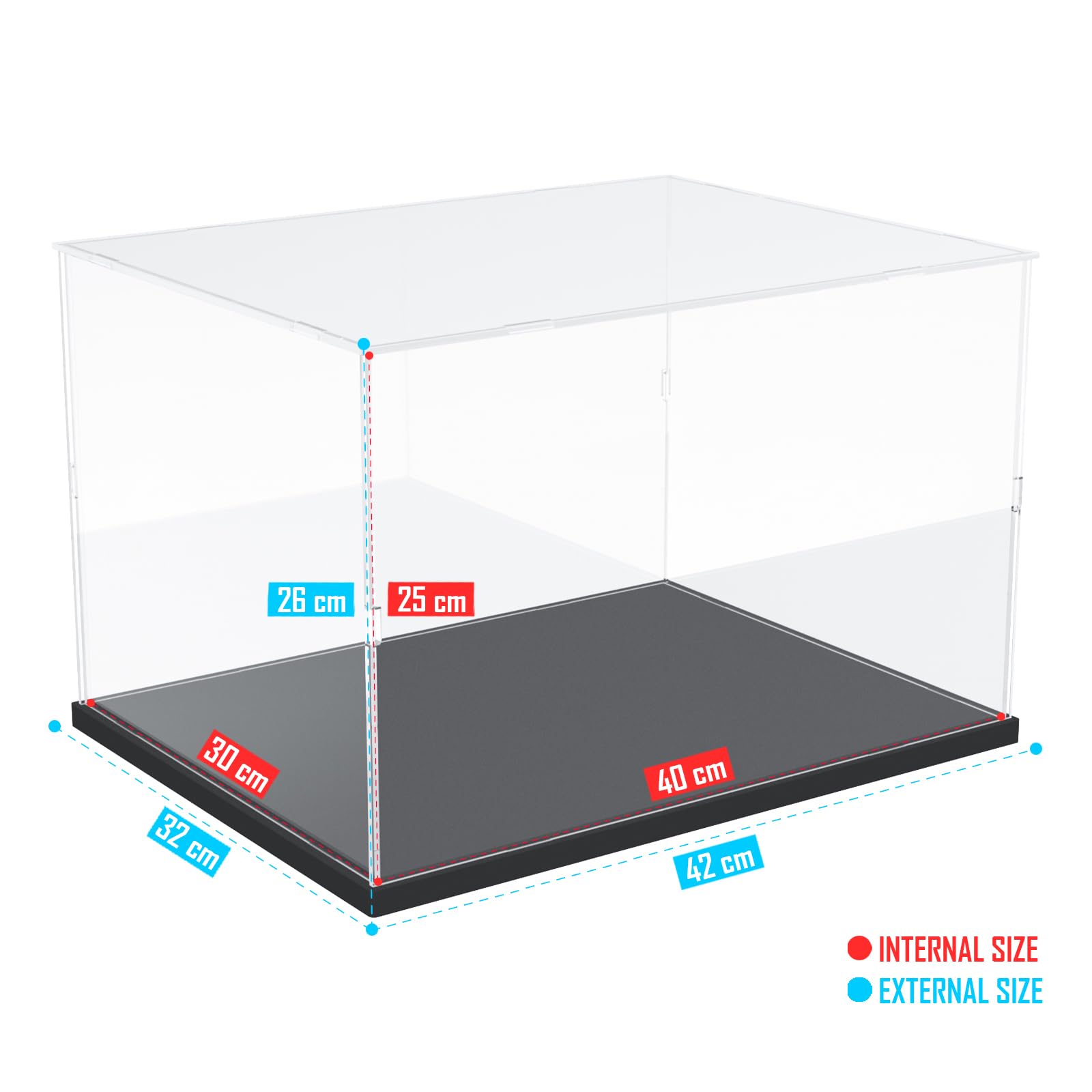 - 【Size Information】Internal size: 15.7x11.8x9.8 inch(40x30x25 cm). This acrylic display case is suitable for Lego Hogwarts Castle 76419 Lego Himeji Castle 21060 Lego Snow White 43242. This acrylic display box is also suitable for collectibles action figures toy model or others has similar size. Includes a 1.5 meters long decor strip for you to decorate your exhibits. (NOTE: Model is not included.)