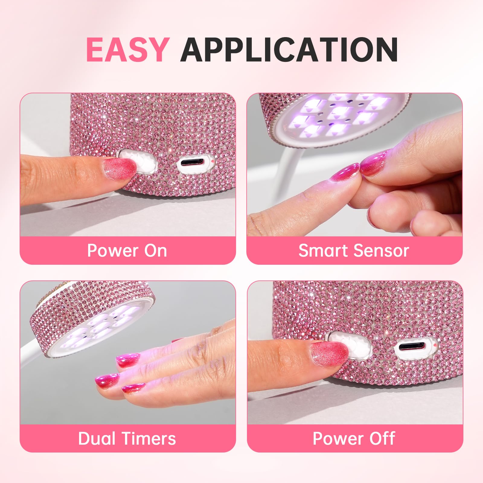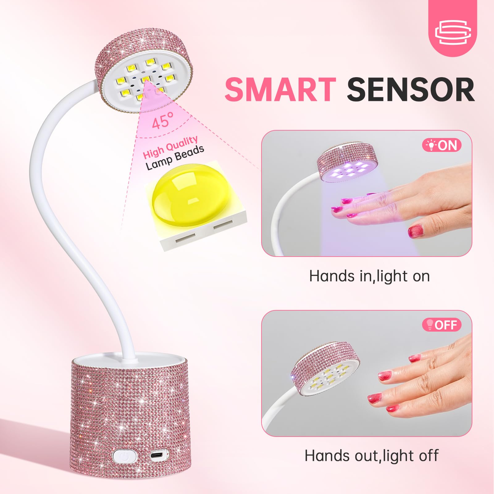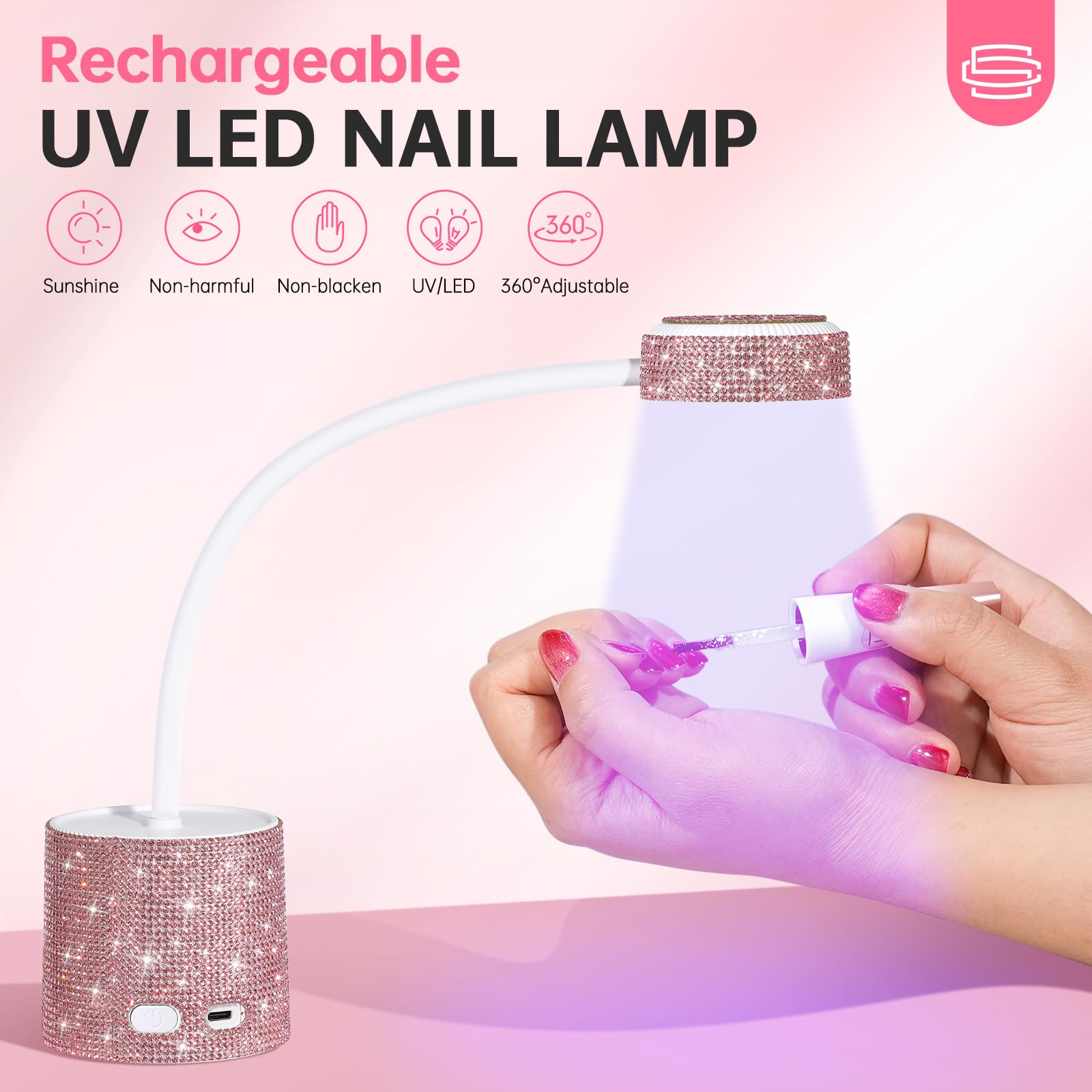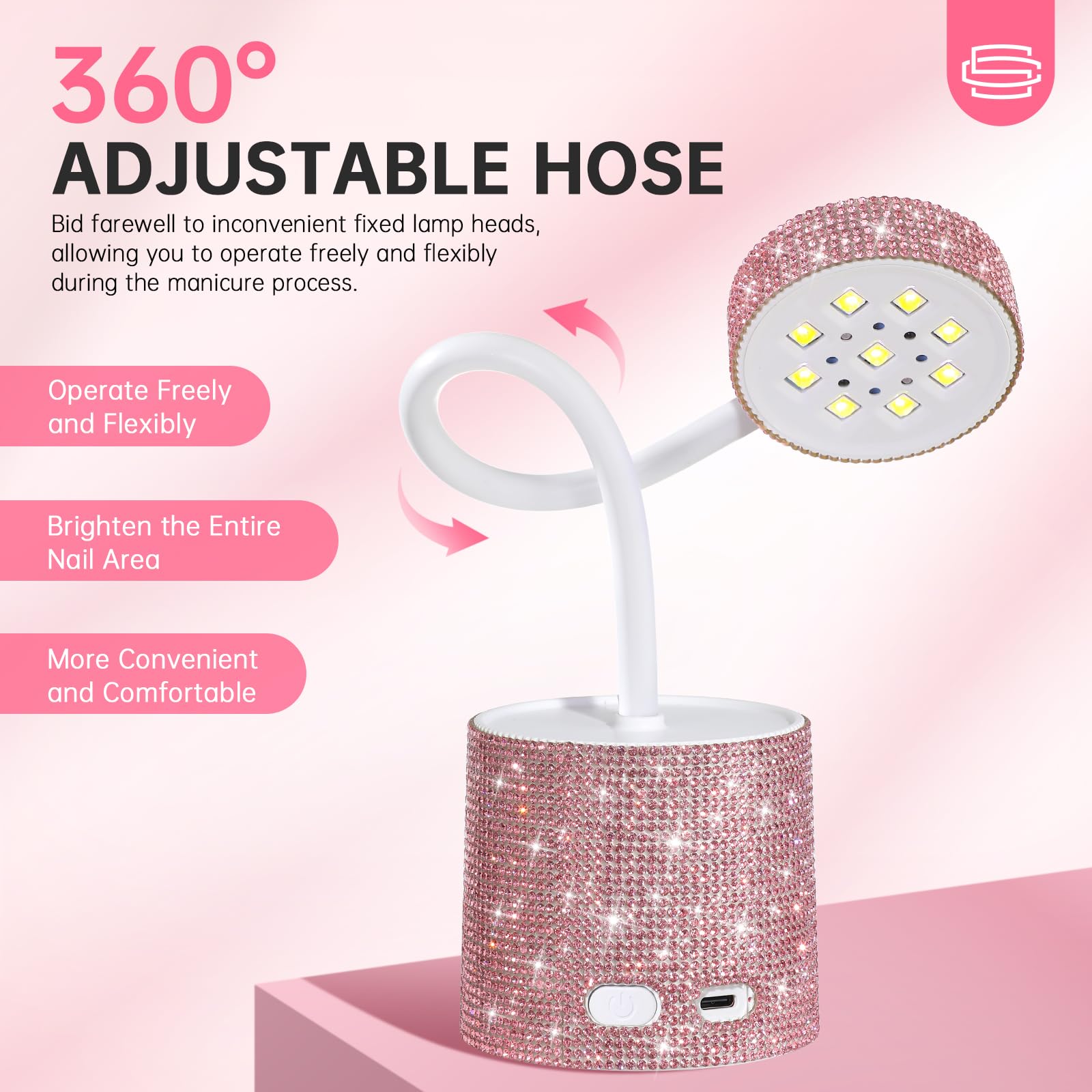 CHRISTINE SHELLY UV LED Nail Lamp, Mini UV Light for Gel Nails Polish, Rechargeable LED Flash Cure Nail Dryer, Quick Drying Goosenecks UV Nail Lamp for Home Nail Salon DIY Manicure, Pink Diamond