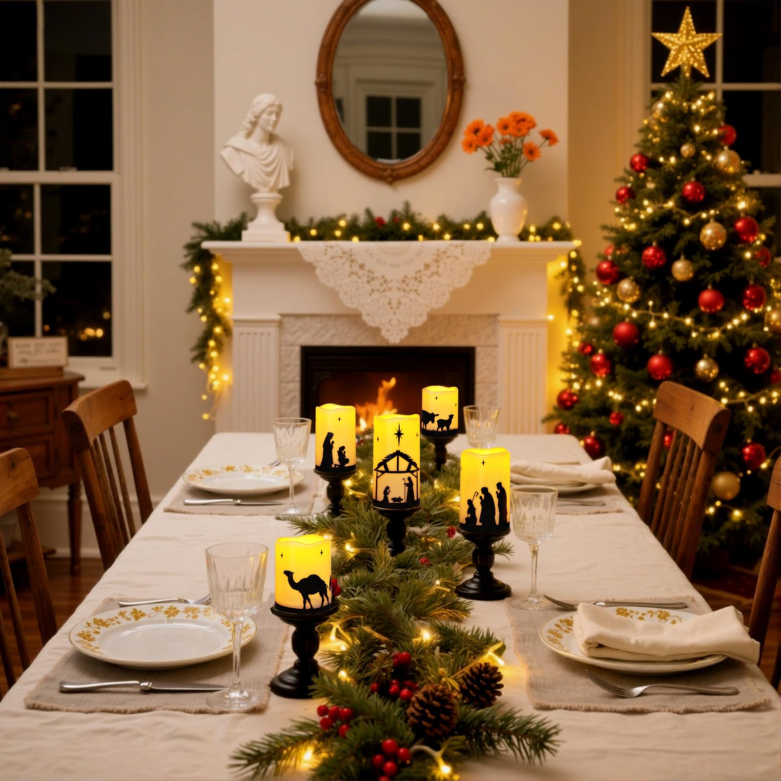 - Nativity Scene Candle Set: These ARIKJ Christmas candles are surrounded by nativity scene silhouettes featuring shepherds, wise men, camels, mangers, Christ, and more, emitting a warm glow and creating a welcoming atmosphere for your holiday decorations. The nativity set come with an "O Holy Night" design box, making them an ideal Christmas gift.