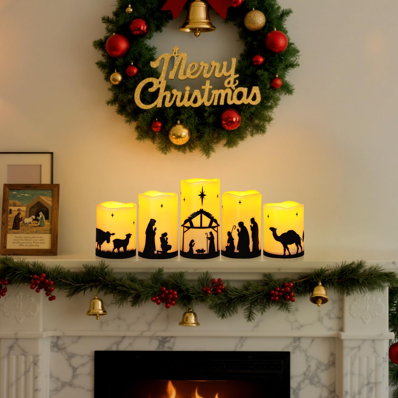 Christmas Decorations Indoor Outdoor - Nativity Set, Nativity Scene Candles with Remote Timer, Holiday Home Table Mantel Decor Centerpieces, Religious Gifts for Christians women, Flameless, Waterproof