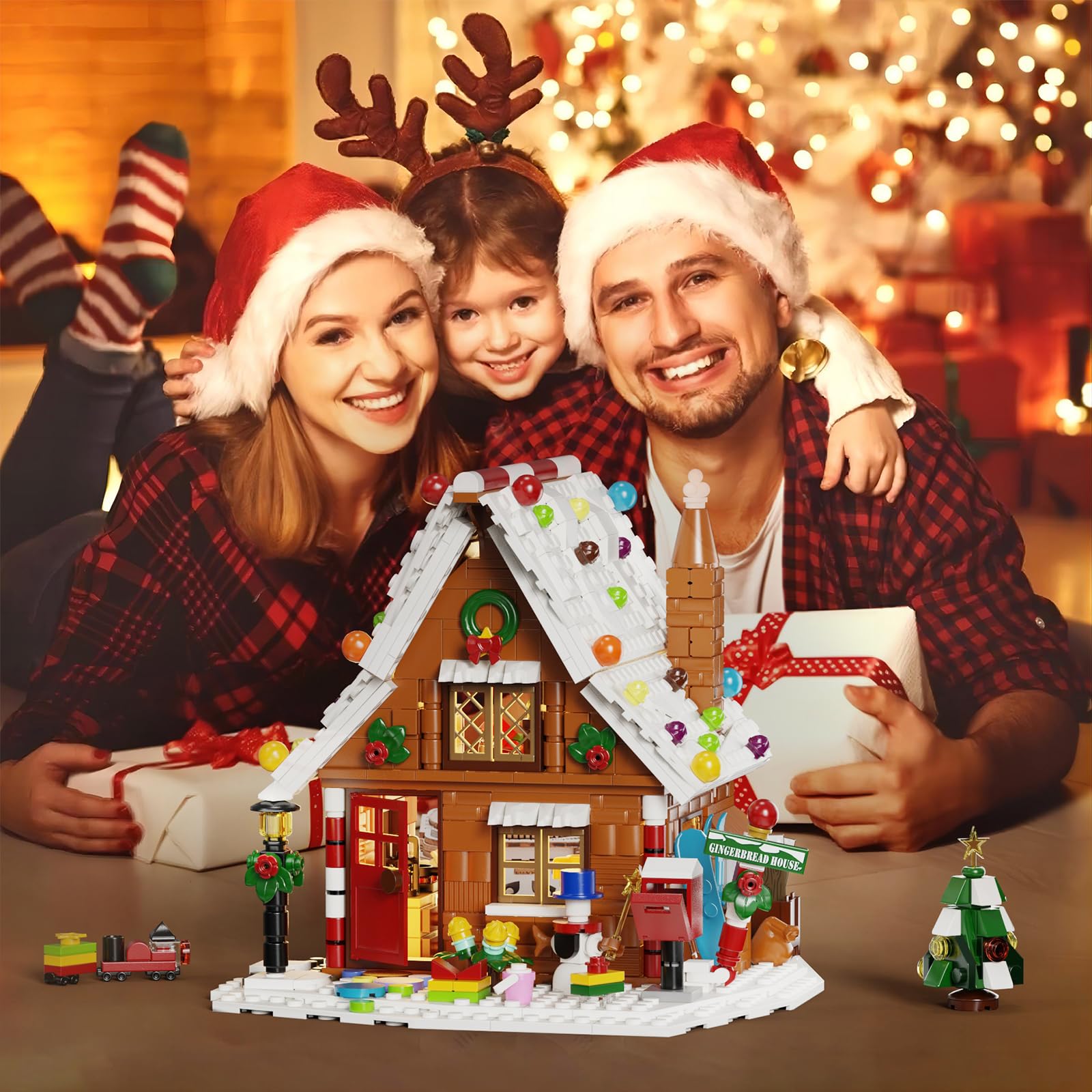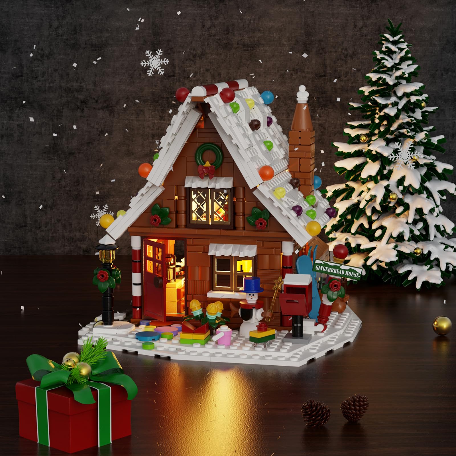 Christmas Gingerbread House Building Kit with LED Lights,Christmas Village House Blocks Set,Compatible with Lego,Xmas Decorative Gifts for Girls and Boys,Kids and Adults