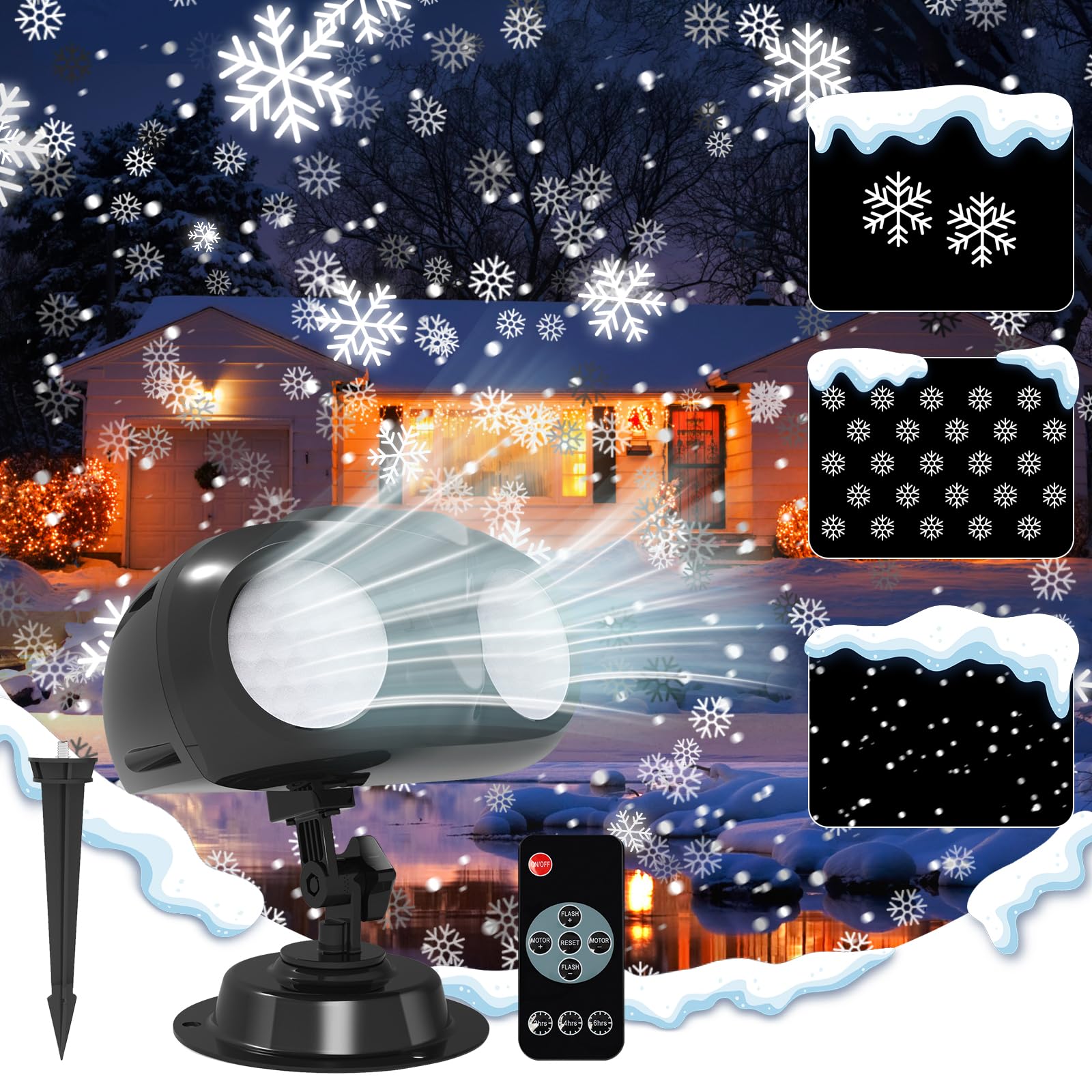 - ❄️Vivid Snowflake Projection: Set apart from standard snowfall projector lights, Hsonline christmas projector outdoor lights incorporate three unique snowflake elements: "snowflake," "snowfall," and "small Snowdots." Each element is designed to be distinct from afar or up close, flickering and fading to create dynamic 3D effects. The continuous descent of snowflakes from top to bottom crafts an enchantingly realistic snowy scene.