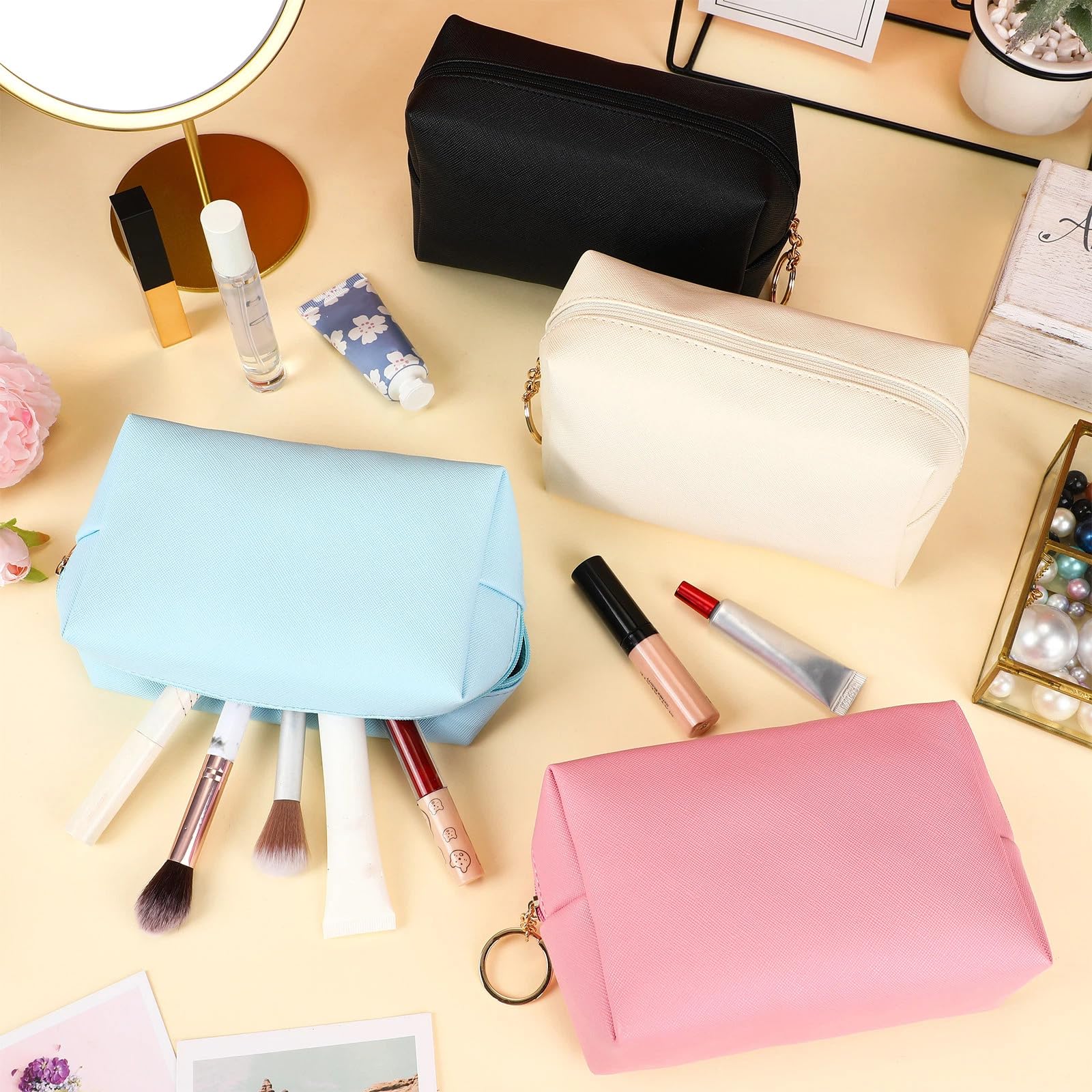 - Sufficient to Use: the package contains 24 pieces of PU leather makeup bags for women in 4 different colors, namely, beige, black, pink and blue, 6 pieces of each color, which is enough for your daily use, and you can share them with your loved ones; You can apply different colors to various types of belongings, bringing convenience to your life