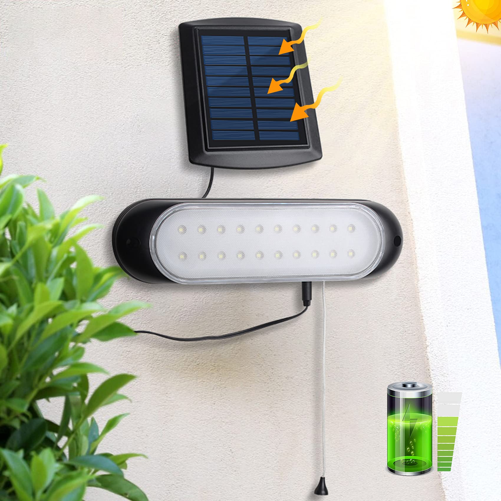 - 【Bright and Clear Light】Solar corridor lights consists of 20 pieces LED for high brightness,the solar lamp has high CRI and low light decay,which is a healthy home lighting.Whenever you need light,the pendant lights can work.The solar shed lights with the soft lighting would not hurt your eyes.