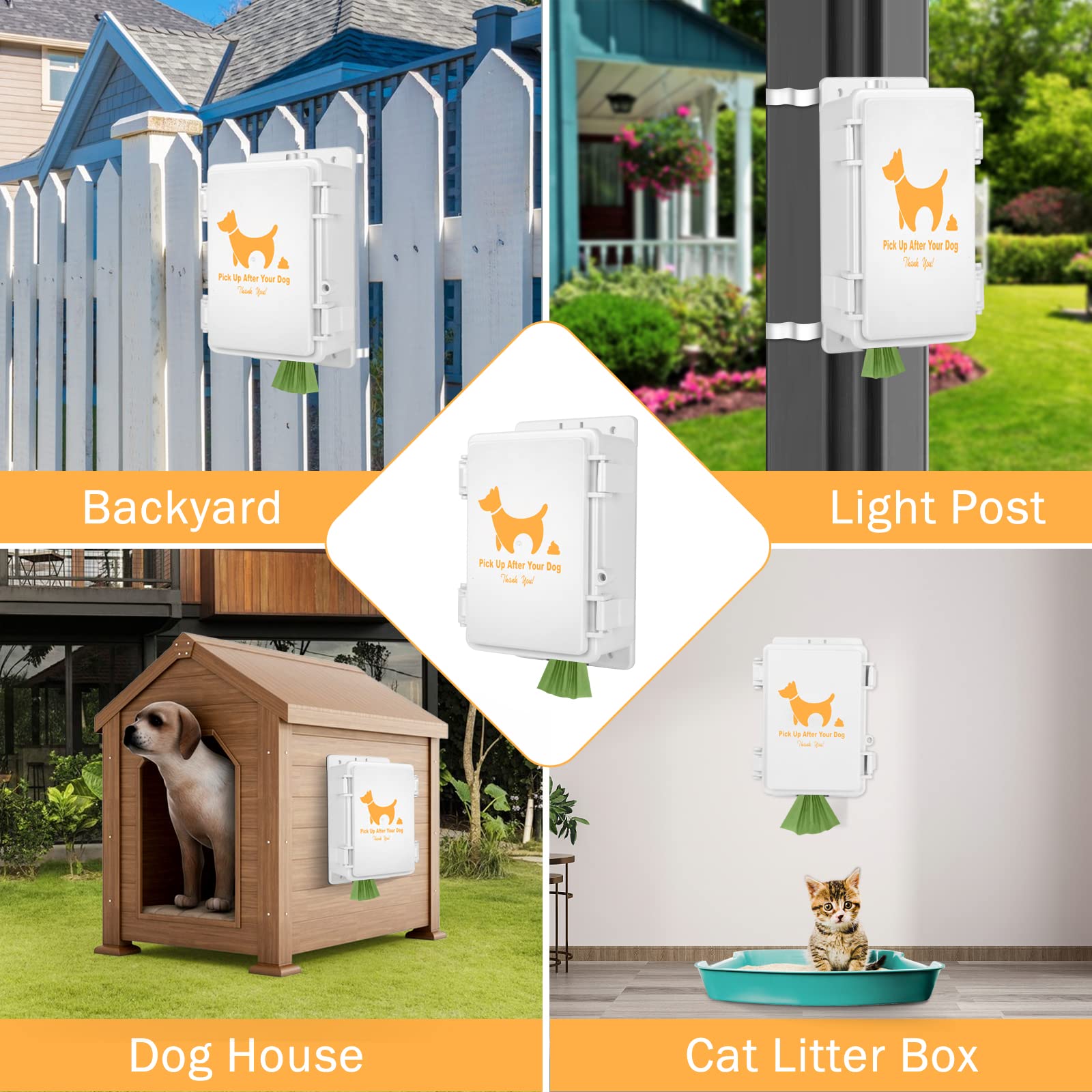 - Widely Application --- Where can this dog bag holder be used?①Perfect for the yard, no need to keep going in and out the house for bags.②Install one in the garage to cover the front yard。③Hanging next to the kitty litter box to make cleaning easier.④Perfect for Airbnb。⑤ Ideal for tent sites.