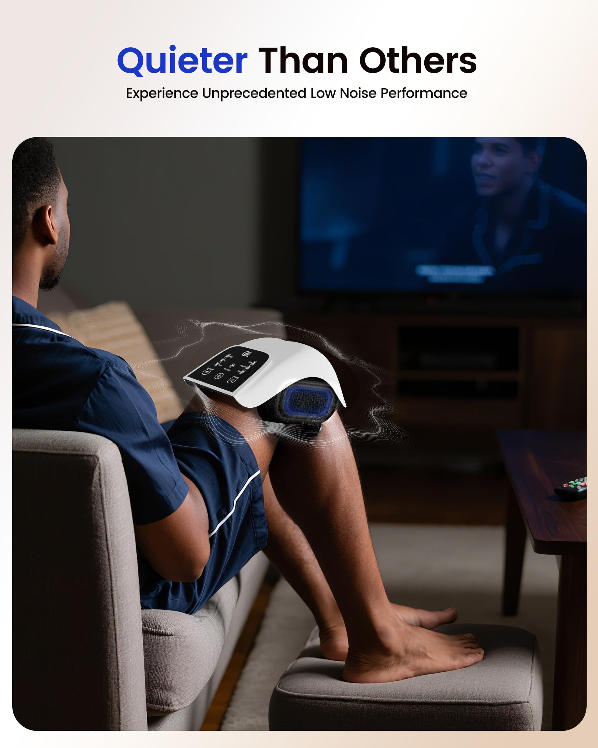 - Low-Noise, Wireless Convenience:Unlike bulky devices, this cordless knee massager operates whisper-quietly. Whether you're reading, watching TV, or working at your desk, the calming warmth and soothing vibration won’t interrupt your surroundings. With its cordless design and adjustable straps, you can enjoy uninterrupted comfort anytime, anywhere.