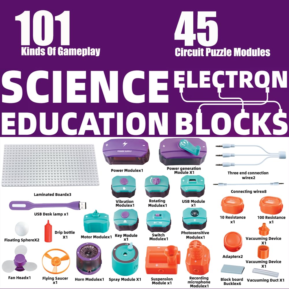 Circuit Board for Kids with 101 Experiments Learning Electricity, 45 PCS Circuit Blocks Board, DIY Electronics Exploration Kit, Physics Science Circuits Toy, STEM Projects Educational Toy for Children