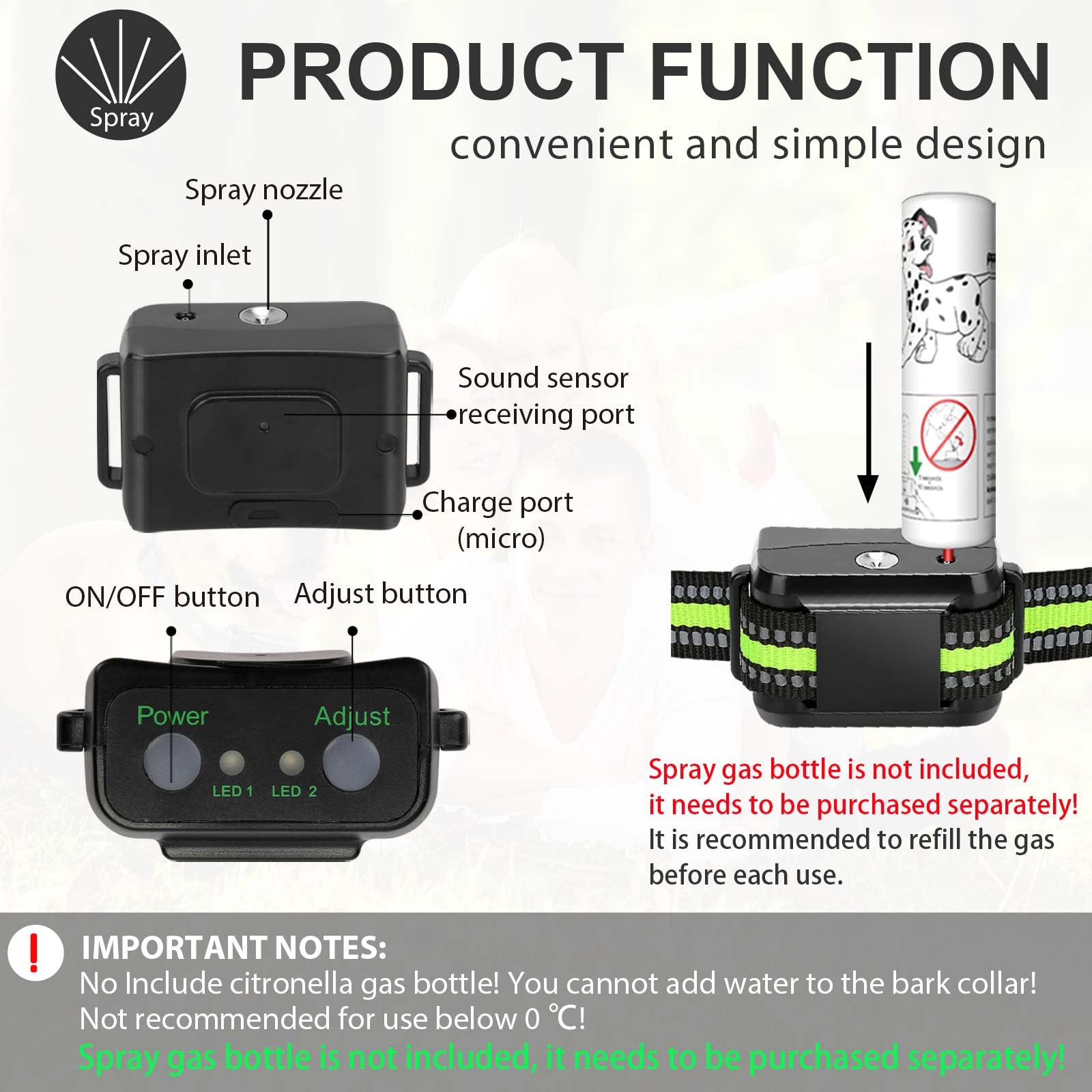 - [Humanity & Citronella Collar] Our citronella dog barking collar can quickly and intelligently distinguish the barking of dogs and automatically release harmless citronella spray. Only when barking twice or more will the collar work be triggered. Other dogs will not trigger the collar spray when barking, which is more humane, safer and more effective than other collars [The Citronella Refill is not included, please purchase it yourself, otherwise it cannot be used!]