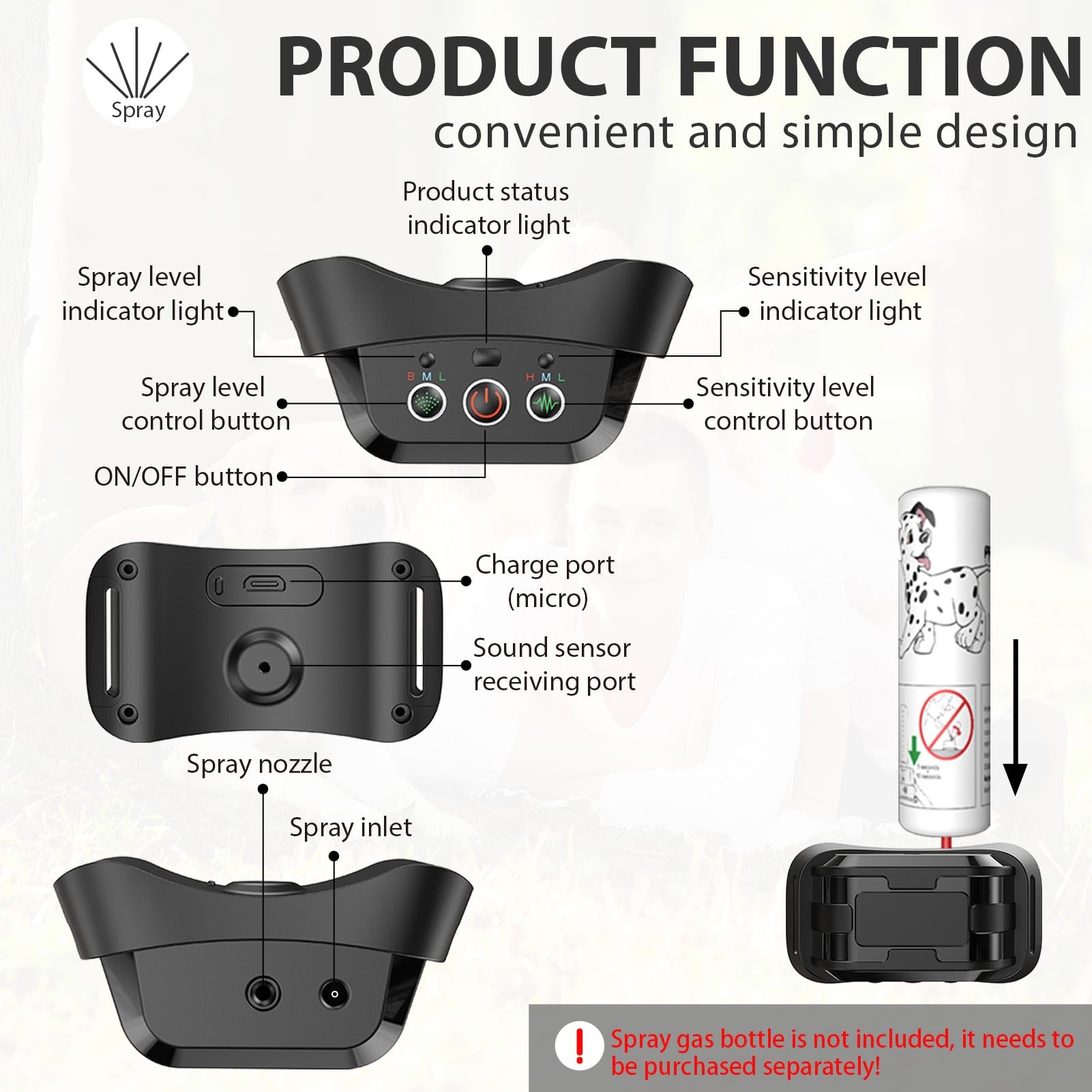 Citronella Bark Collar [No Citronella Refill] Citronella Dog Collar, Level 3 Sensitivity Adjustable Citronella Dog Bark Collar, Safer Anti Barking Control Spray Collar for L/M/S Dogs