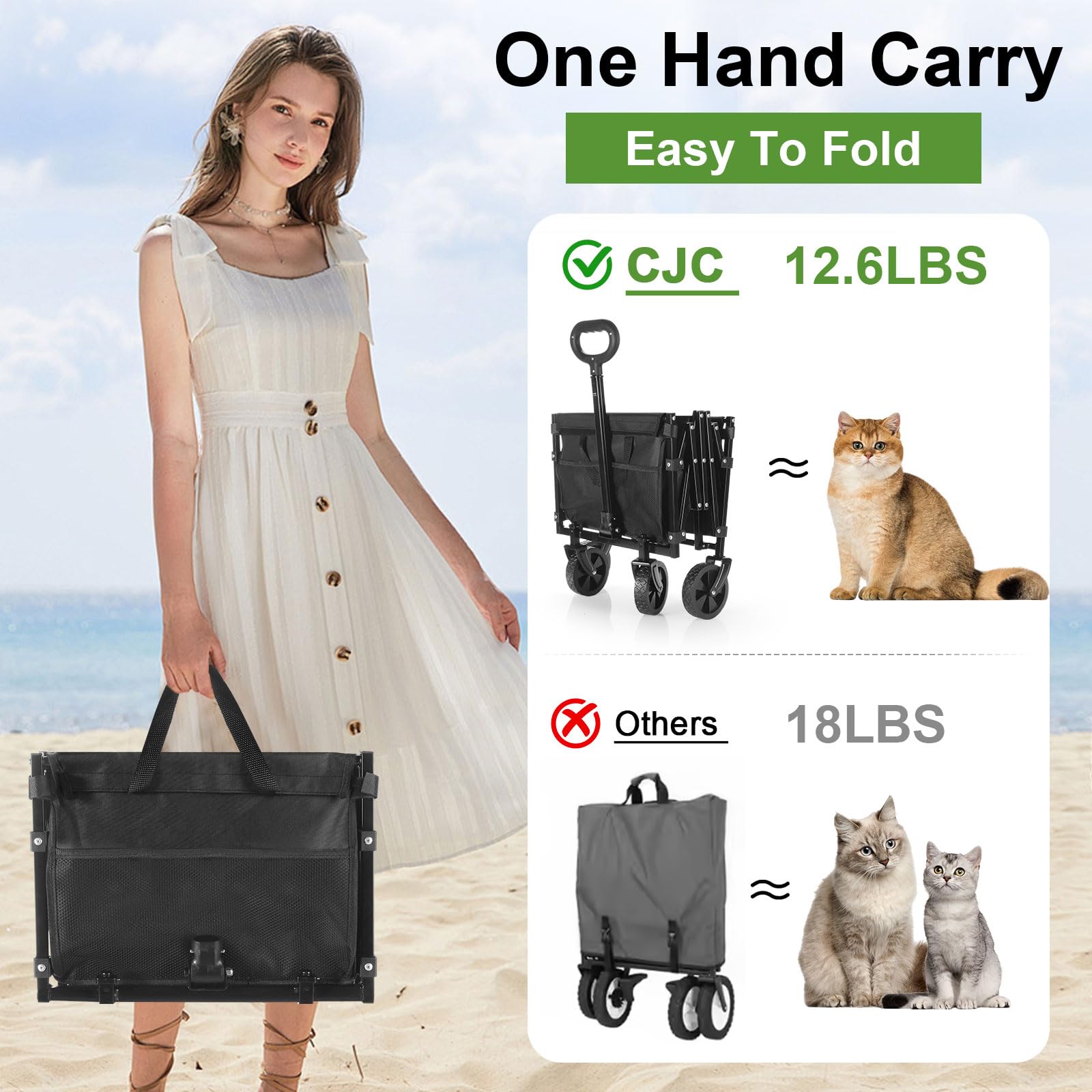 cjc 220LBS Folding Wagon Cart, Heavy-Duty Wagon Carts Foldable with 360° All Terrain Wheels, Large Capacity Outdoor Utility Collapsible Wagon for Camping Grocery Beach Garden 27.5" x 16.9" x 35.4"