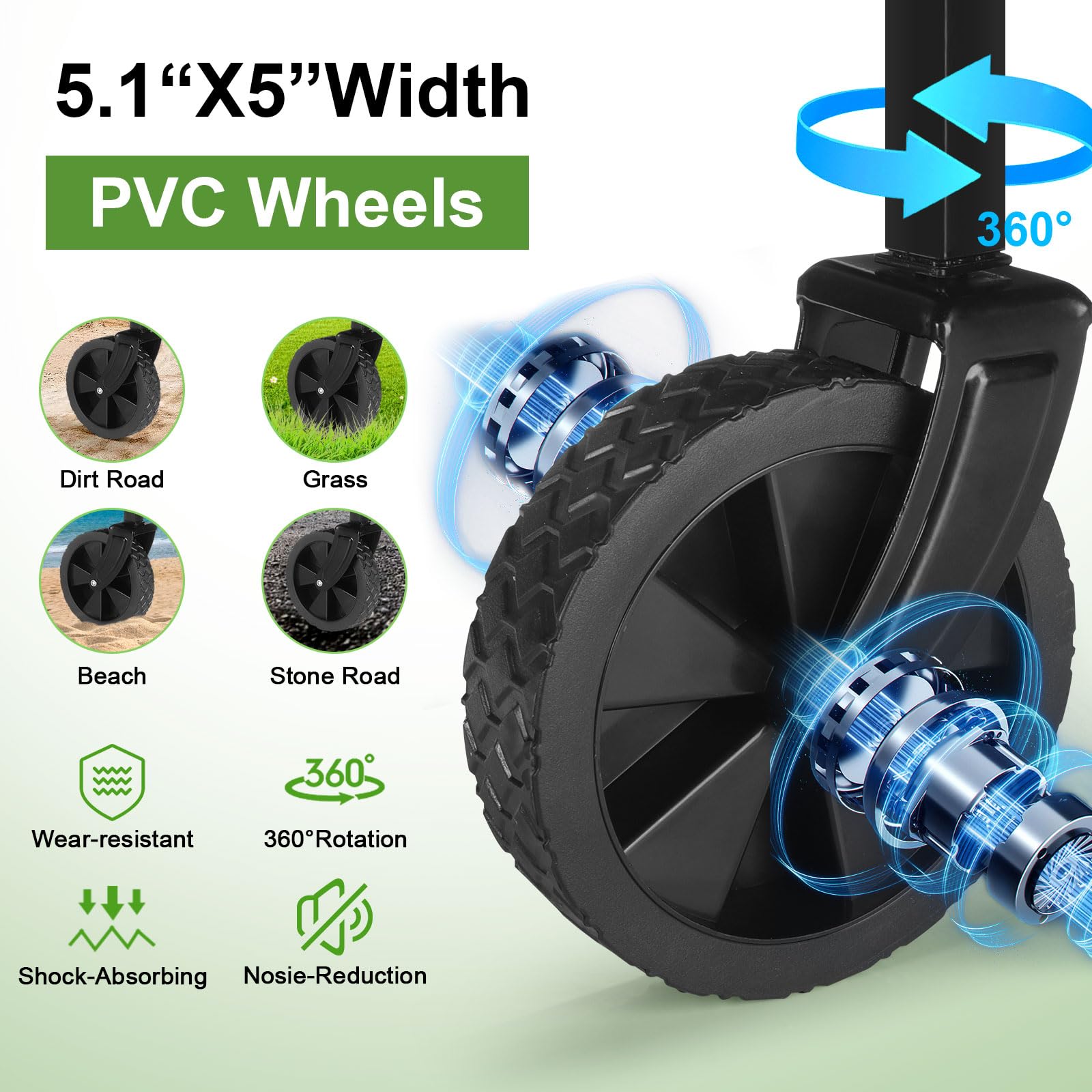 - 🌻Adjustable Handle & 360° All Terrain Wheels: The handle can be extended up and down by 90° to accommodate different heights, ensuring comfort and control. The 360° swivel front all terrain wheels provide easy maneuverability on various terrains, and the wheels can be easily removed for cleaning and storage.