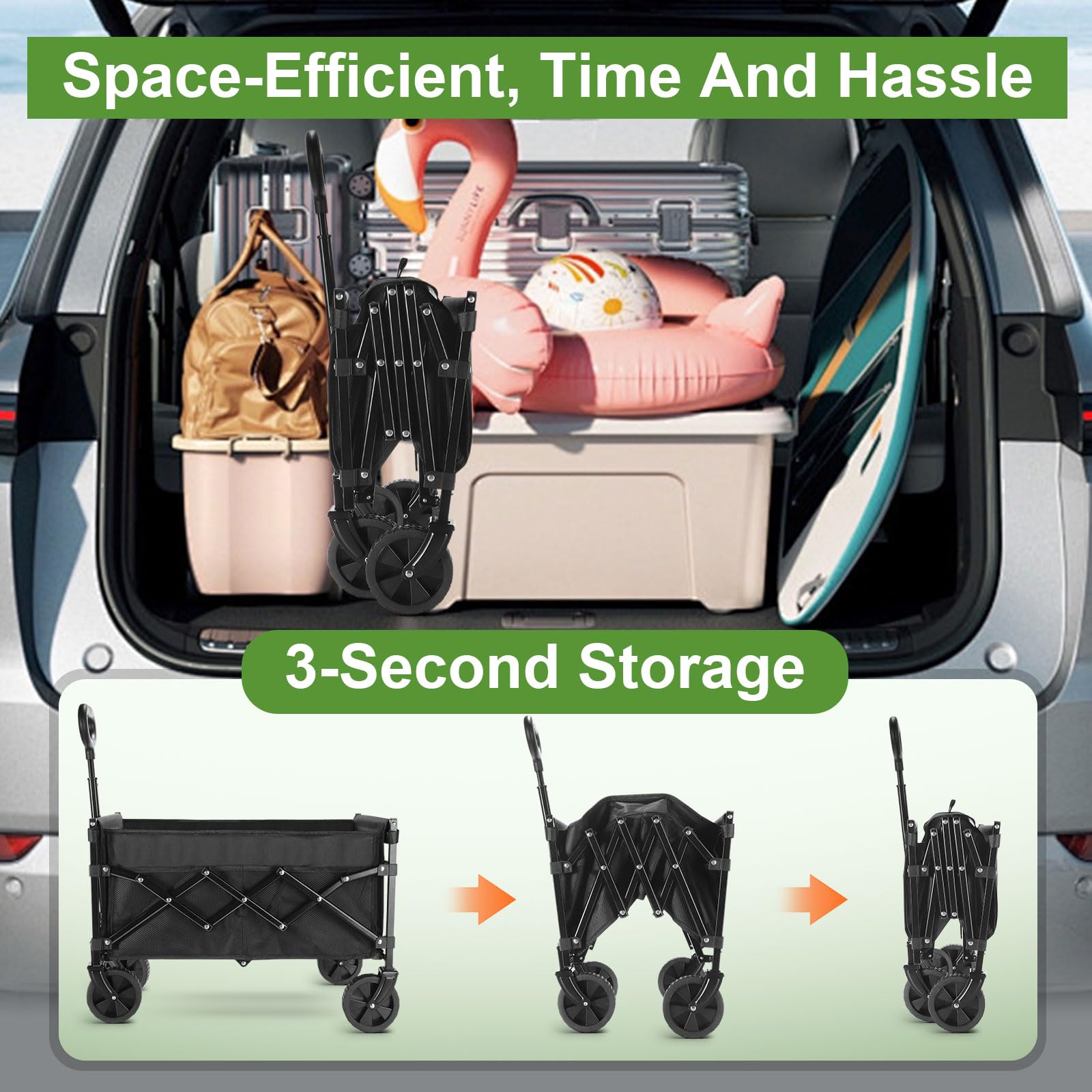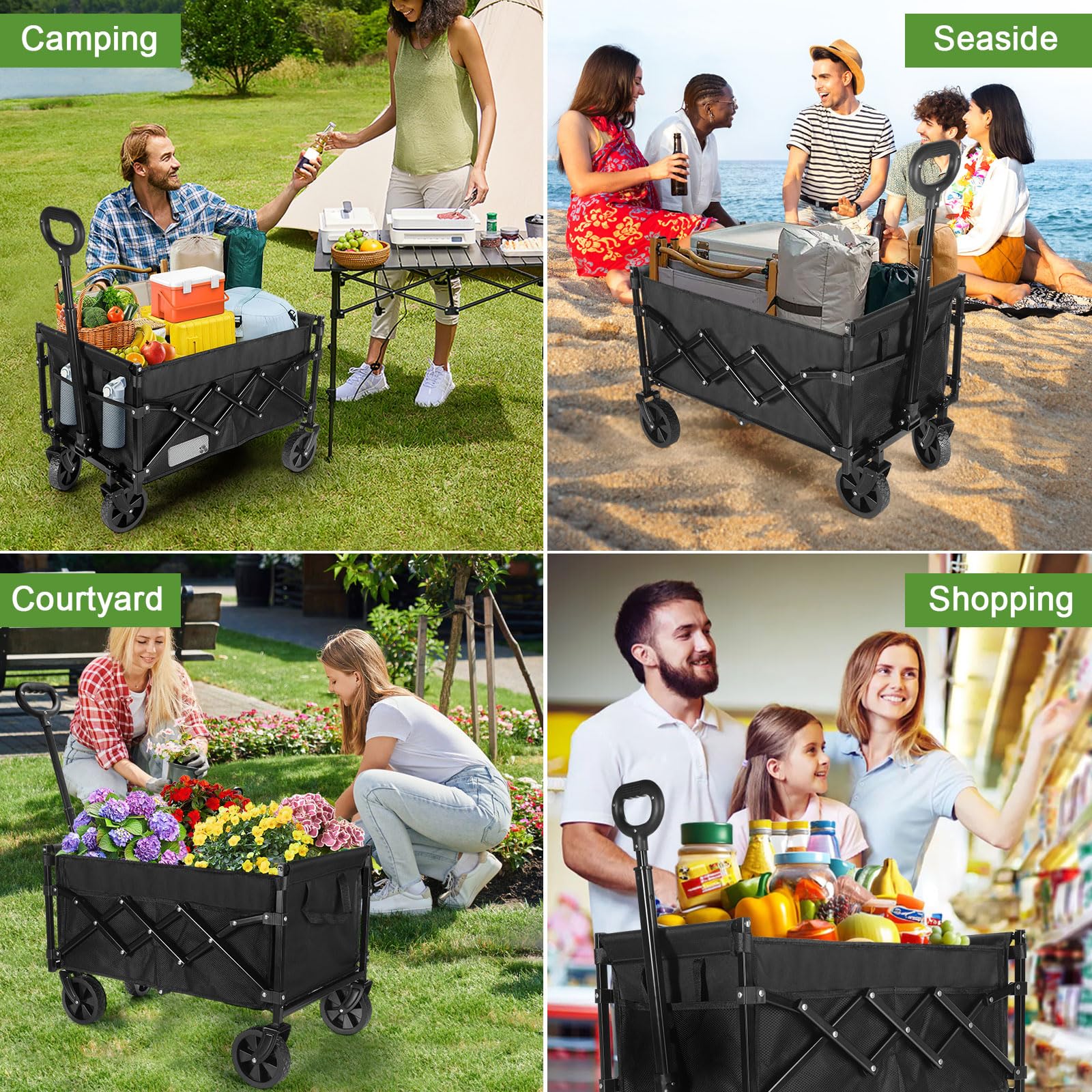 - 🌻80L Capacity & Versatile Use: With dimensions of ⚠️ L27.5" x W16.9" x H35.4" when unfolded and ⚠️ L17.7" x W13.5" x H6.8" when folded, this all-terrain utility shopping cart provides ample storage space. It is suitable for outdoor camping, home shopping, garden use, beach toy transportation, fishing trips, and sports activities.