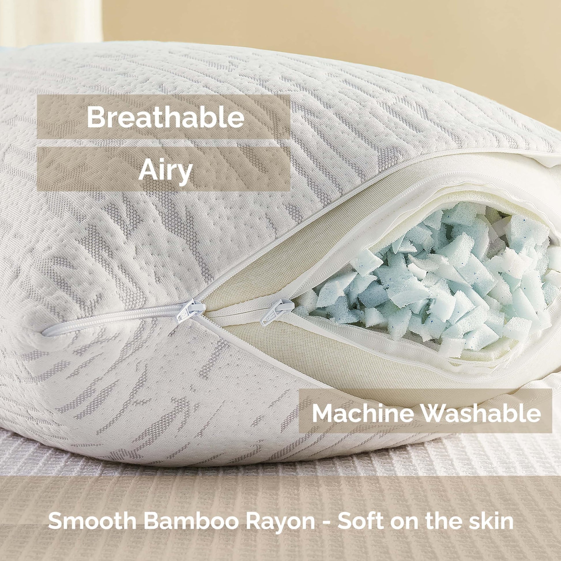 Clara Clark Bamboo Foam Pillows 2-Pack – Shredded Memory Foam Bed Pillow All Side Sleeper Adjustable Loft Pillows – Cooling Velvet Soft Rayon Bamboo Removable Cover – Hypoallergenic – King/Cal King