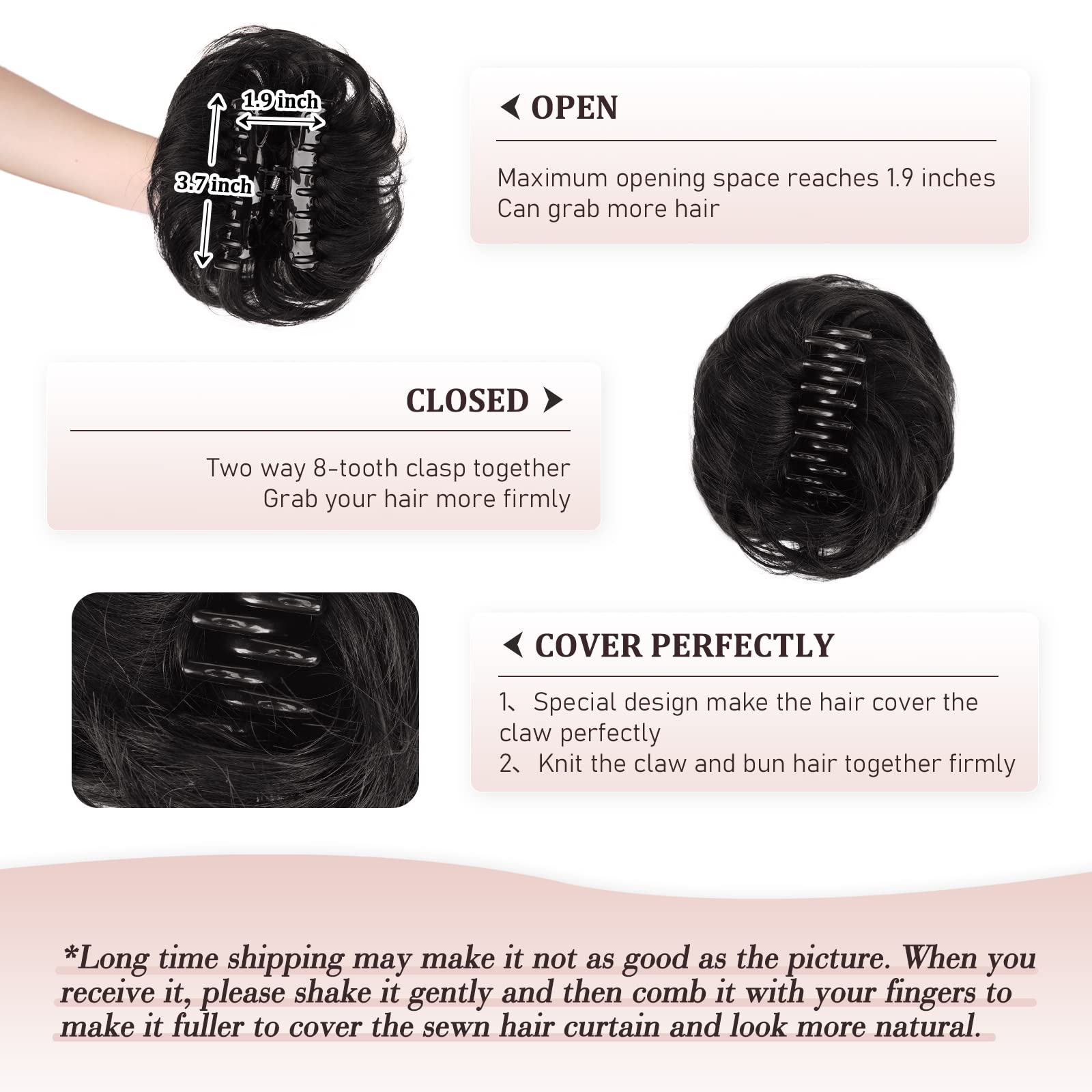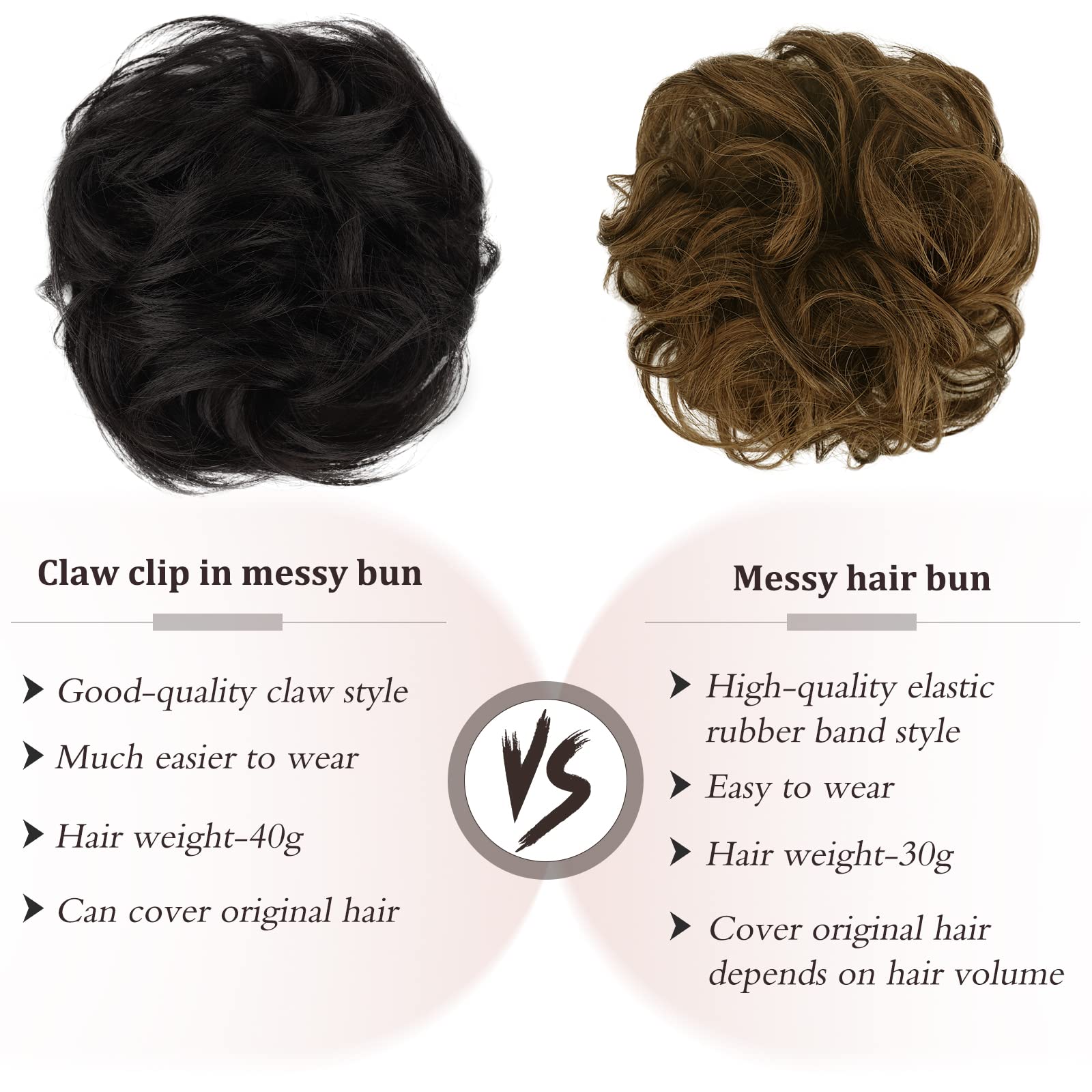 - ♥ Color Issue: The color of a 103% human hair clip claw bun is more natural than a synthetic messy bun hair piece. Each color swatch or photo shown can vary from screen to screen, so there may be a certain color difference between the picture and the real object. If you meet with any problems, you can contact us with any suggestions.