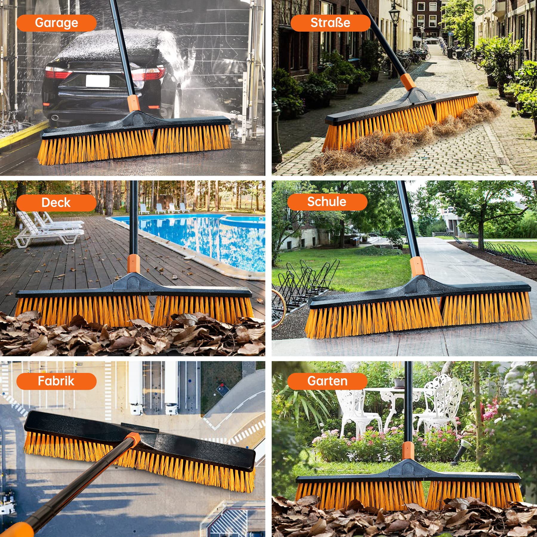 - Heavy Duty Push Broom Outdoor: You can use the outdoor brooms for sweeping patio,shop, garage, yard, garden, deck, concrete as a industrial broom or household broom.