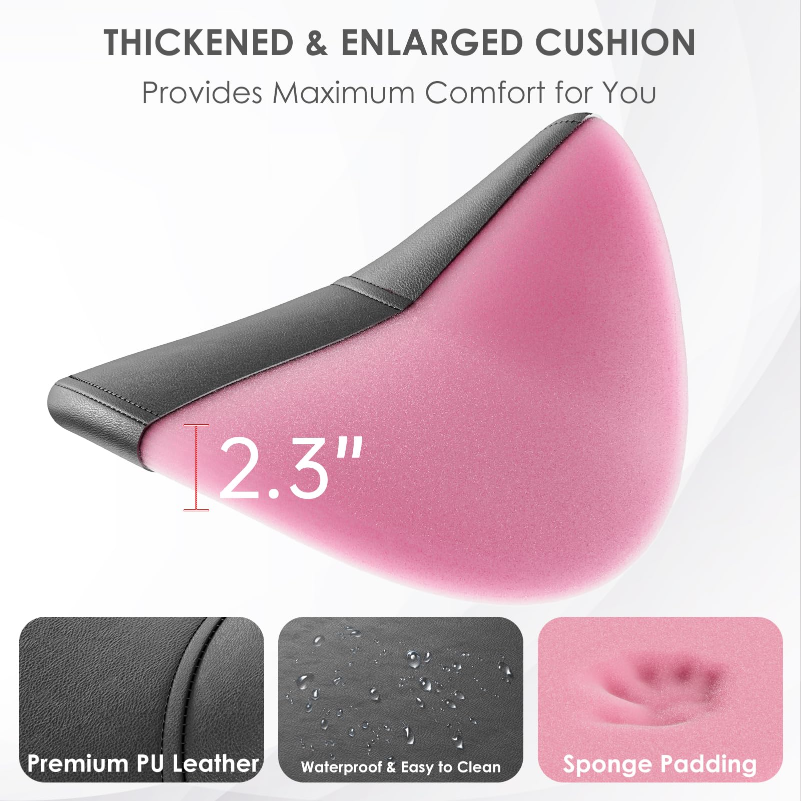 - Ergonomic Seat Cushion: The ergonomically designed saddle-shaped seat can correct your sitting posture and relieve pressure on your back and spine, which features 2.3" thicker high density breathable foam cushioning, the cushion is composed of a high-density, multi-layer foam padding and draped in a luxurious PU leather, durable, soft, and easy to clean, but has no offensive smell like other synthetic materials.