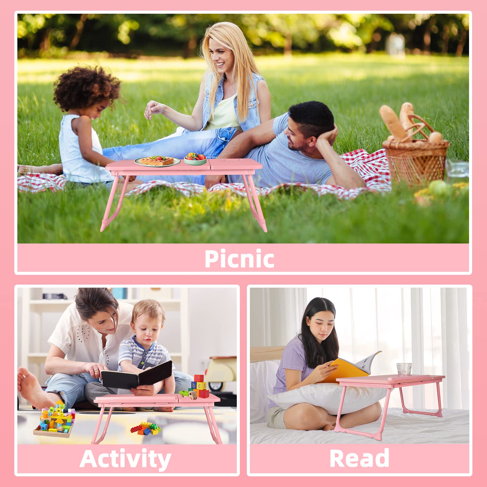 CloudTrip Laptop Desk for Bed or Couch, Lap Desk, Woking in Bed Desk, Home Office Desks, Breakfast Tray, Desk with Cup Holder, Watching Movies in Bed, Laptop Stand for Bed, Fordable Legs Desk (Pink)