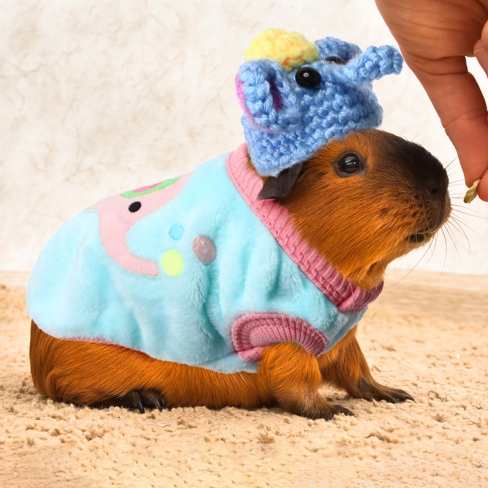 - Soft and Comfortable Material: careful craftsmanship goes into these guinea pig costumes; With a soft flannel material for the clothes and a cute mini woven hat made of yarn material, these accessories are not only good looking, but also comfortable for your pet wearing, thus causing no strain or discomfort