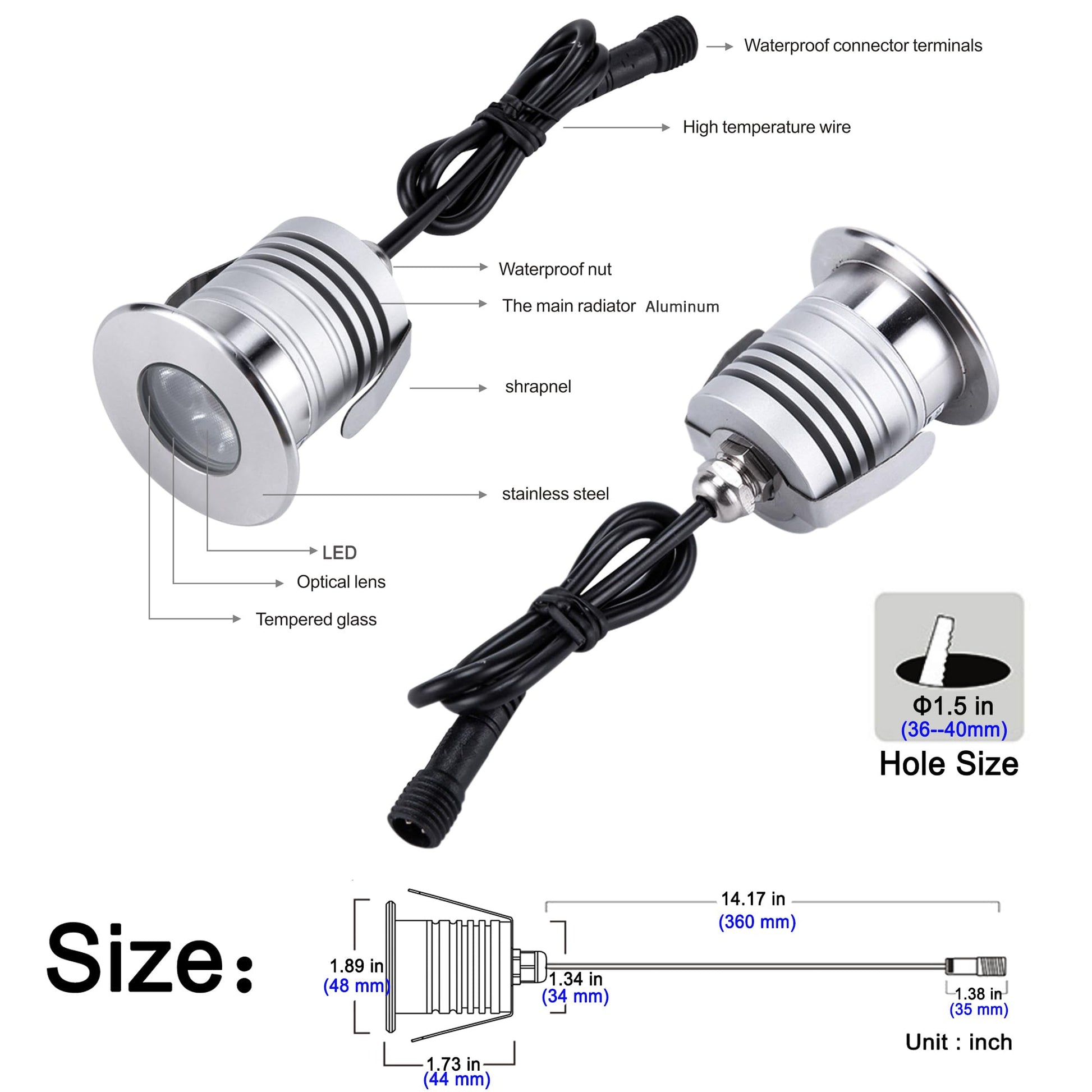 Size :Φ1.89 inch*H 1.73 inch / Φ48 mm*H 44 mm