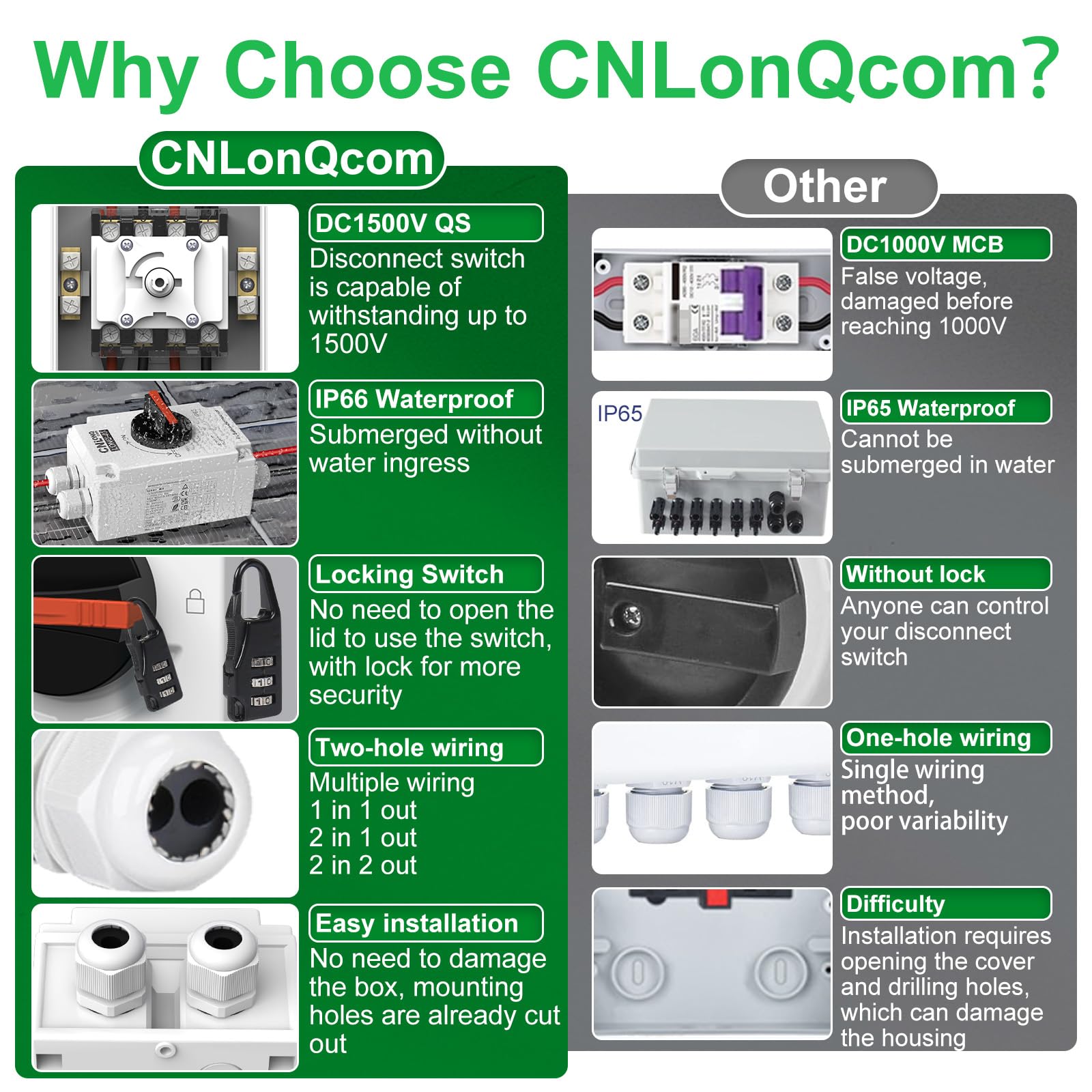 CNLonQcom Solar Isolator Disconnect Switch 32 Amp DC1200V DIY 1 or 2 Strings with IP66 Waterproof Outdoor for Rooftop PV Systems, RVs and Boats