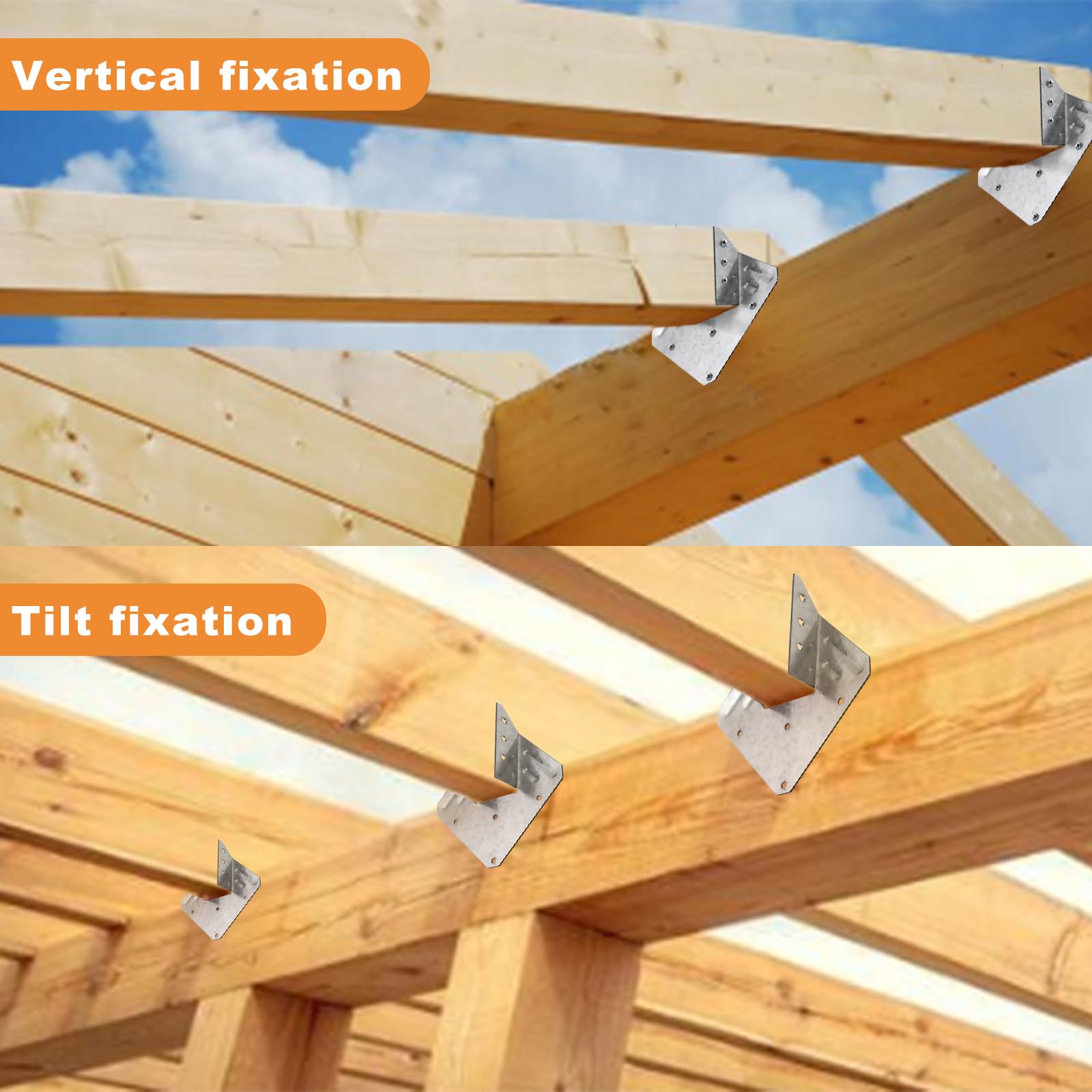 - 【Easy DIY Installation】: Simply attach the hurricane ties to the rafters, secure the truss brackets to the horizontal beams with screws or nails, and then screw them to the rafters themselves