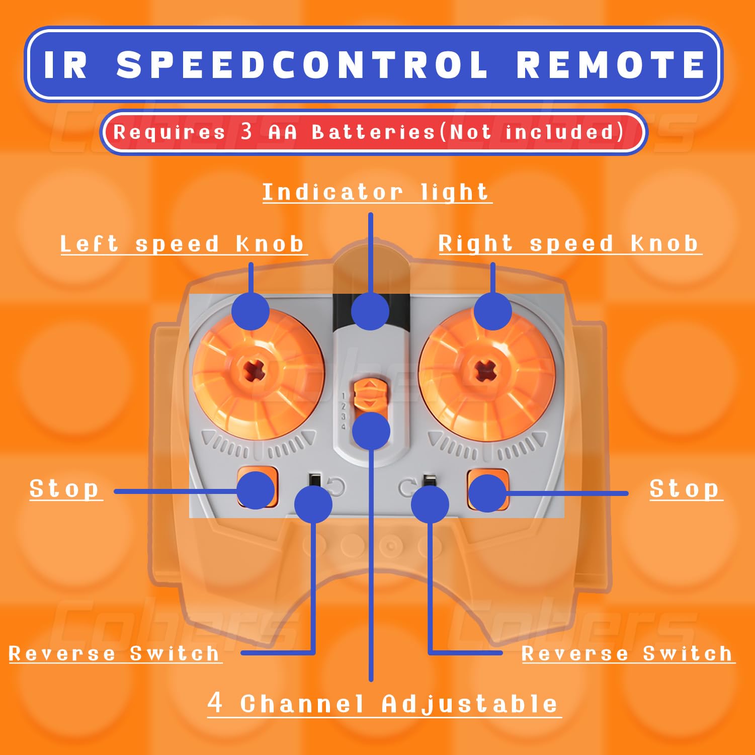 - The IR adjustable speed remote control has 4 channels. Controls motor speed with a point and click wheel. Requires 3*AAA (1.5V) batteries.