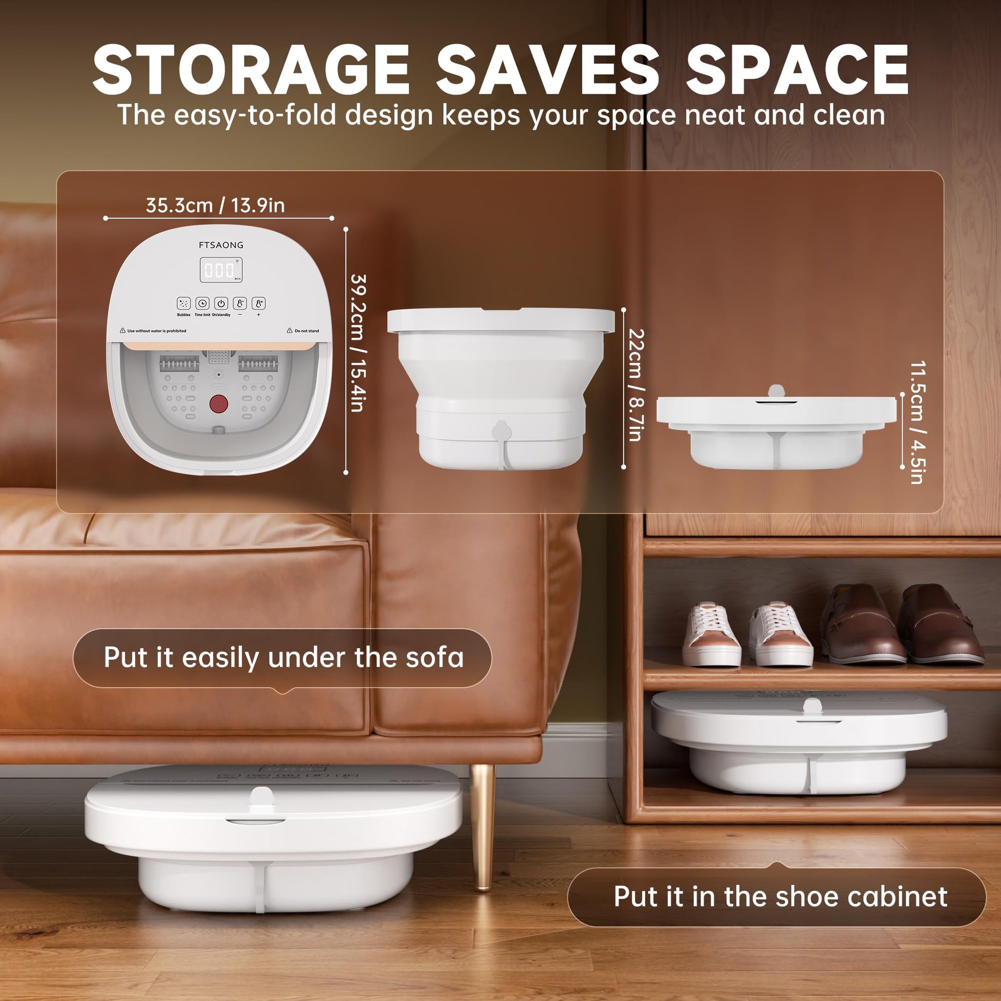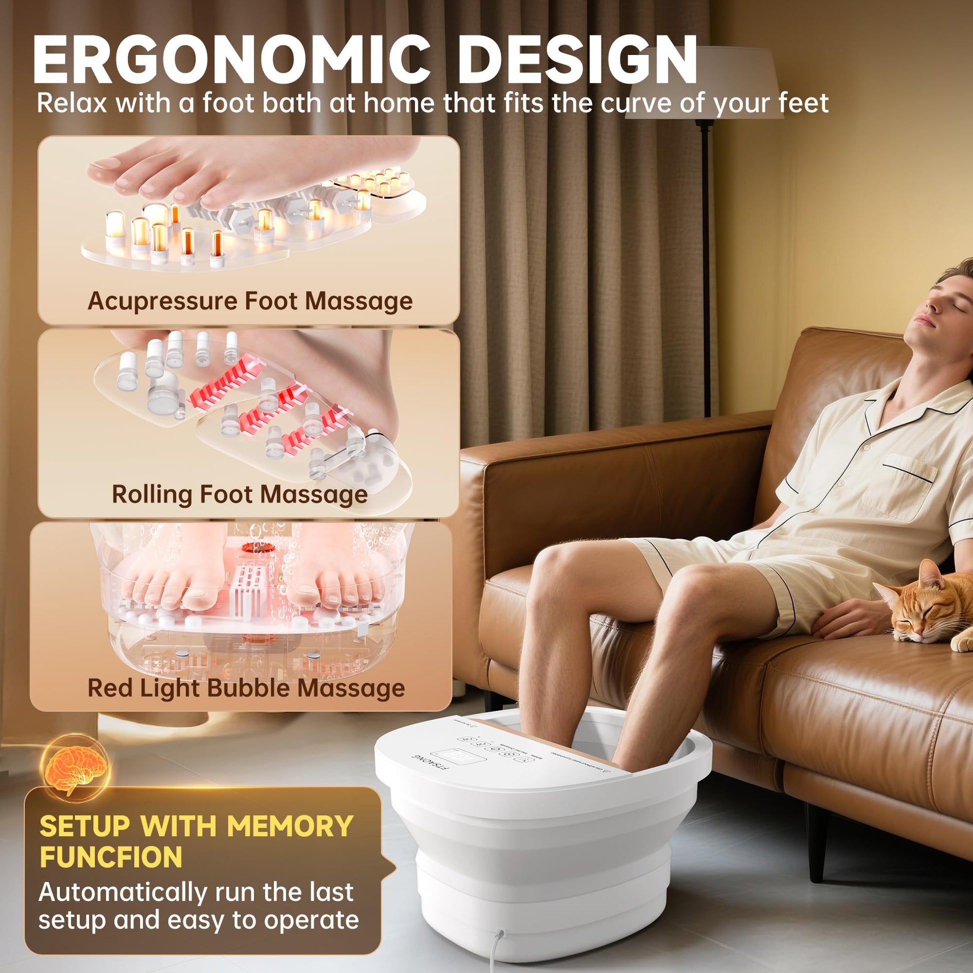 Collapasible Foot Spa Bath Massager with Heat, Pedicure Foot Spa with Bubbles and Jets/Timer/ Temperature Control, Feet Soak Tub for Home, Office, Relaxation and Stress Relief, Gift for Men and Women