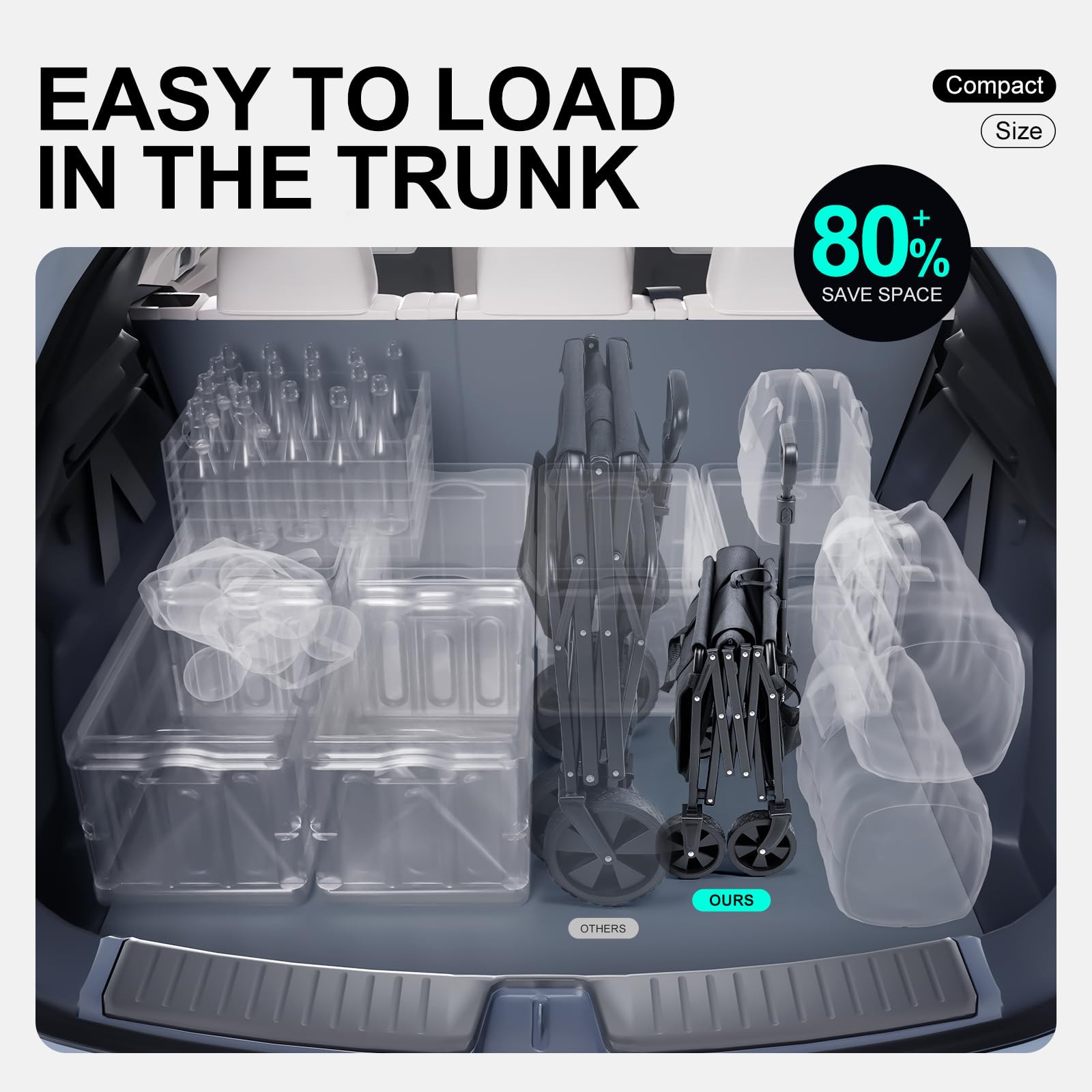 - CONVENIENT AND QUICK FOLD: Just lift up the hand strap on the bottom plate of wagon cart ,you can complete folding.You will get a wagon folded size with 16.7 x 28.3x 9 inches,never taking your car trunk too much space, perfect for using as a shopping cart with wheels