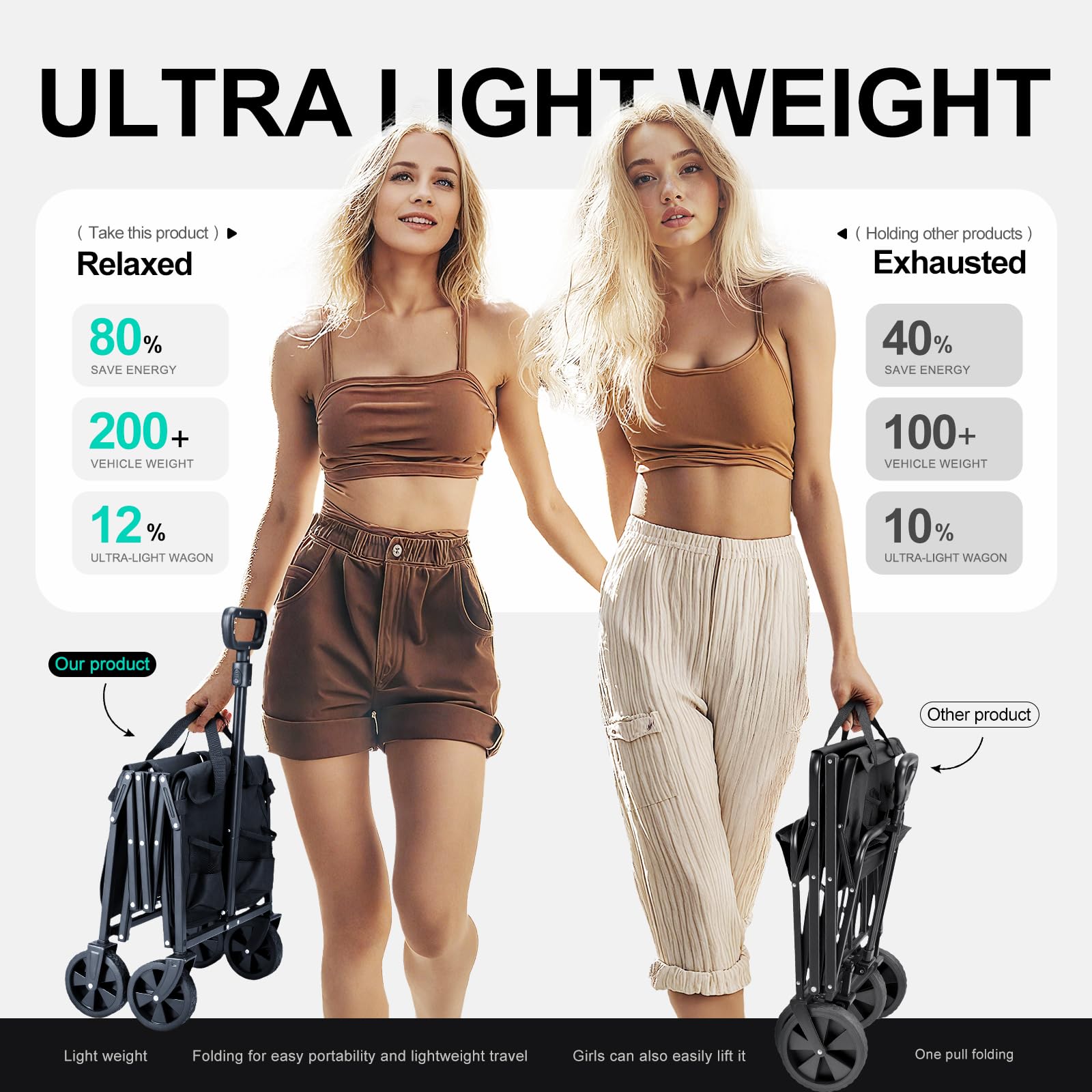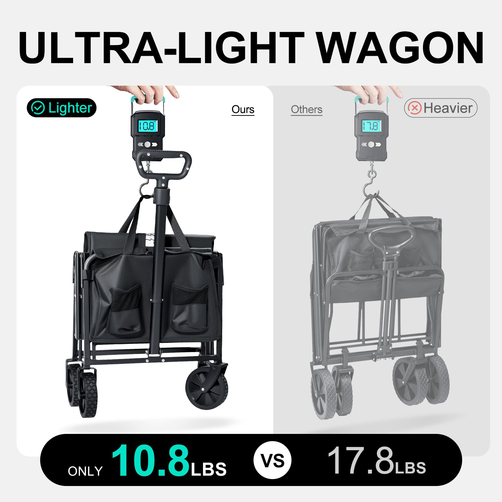 - LIGHTWEIGHT AND COMPACT: If you are looking for a portable grocery wagon, TANSTRIDER would be a good choice.Our collapsible foldable wagon is designed for lightweight and compact application, only 10.8LBS, achieving effortless one-hand carrying on
