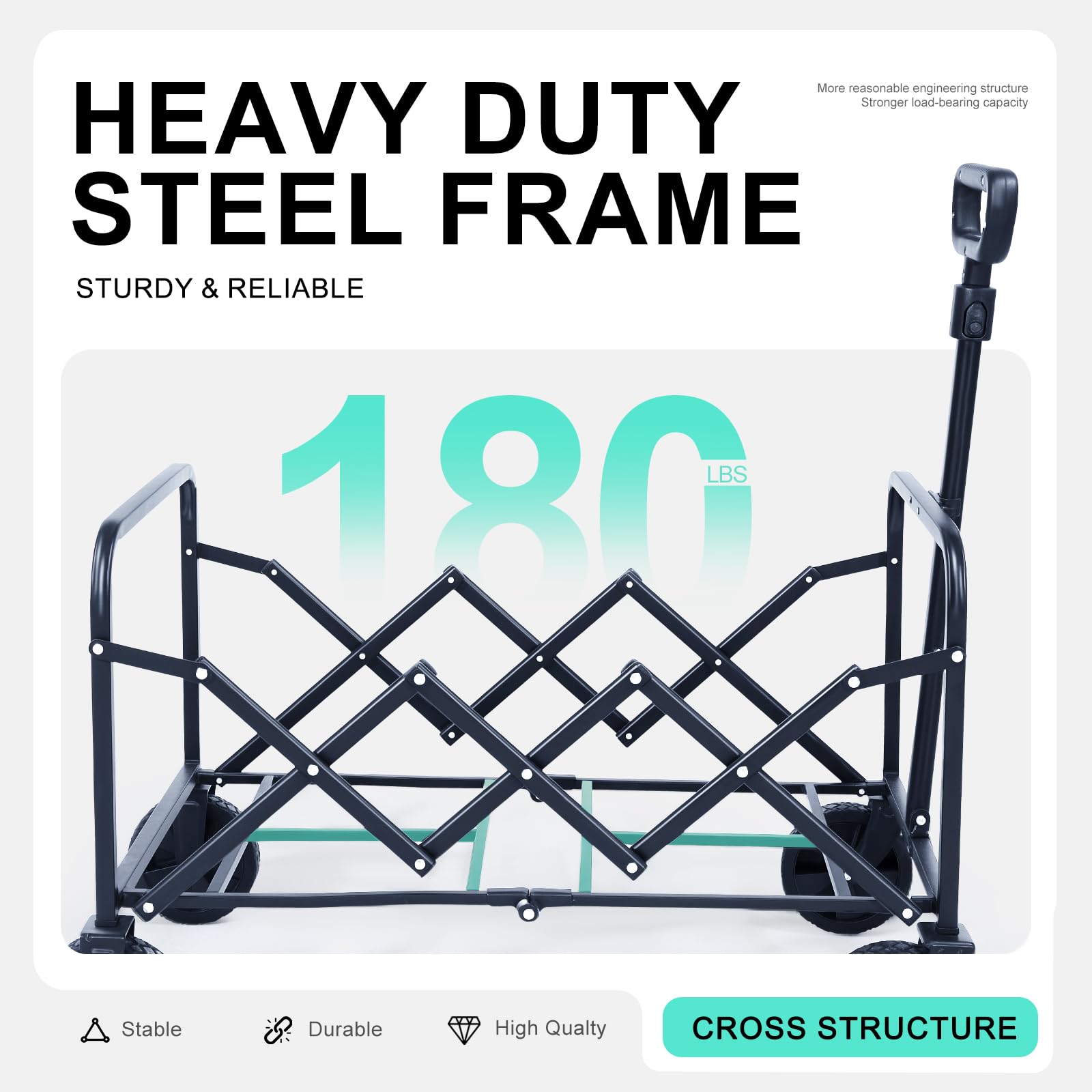 - BUILT TO LAST: The foldable wagon cart is consrtucted with sturdy alloy steel frame and tough 600D oxford cloth for reliability and durability.The dynamic weight of the heavy duty wagon load up to 180 pounds,it is perfect for groceries transporting, shopping, gardening, camping, fishing, outdoor time sports