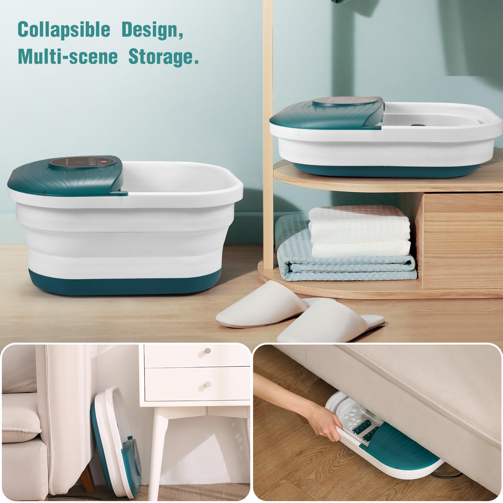 - 【All in one Foot Spa Massager】This multi-functional collapsible foot spa bath combines heating, massage, oxygen bubbles, exfoliating the feet, storage box to relax your overworked feet, which is suitable for the whole family.