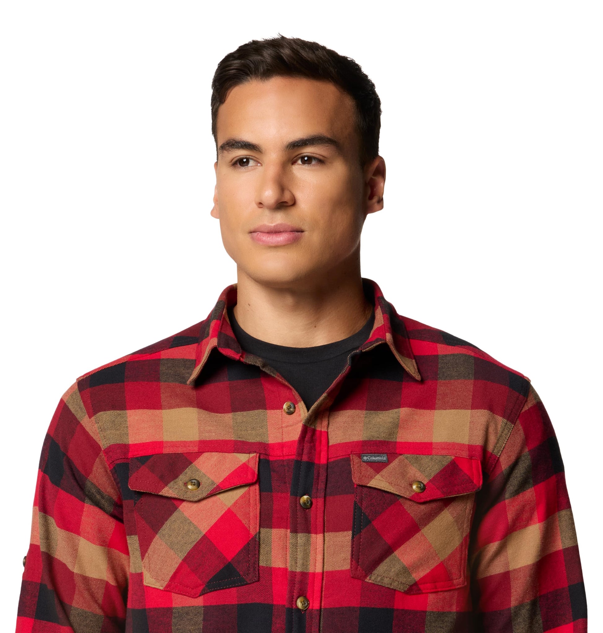 Columbia Men’s Bearmouth Springs Roll Up Flannel Long Sleeve Shirt, Red Jasper Buffalo Check, Large