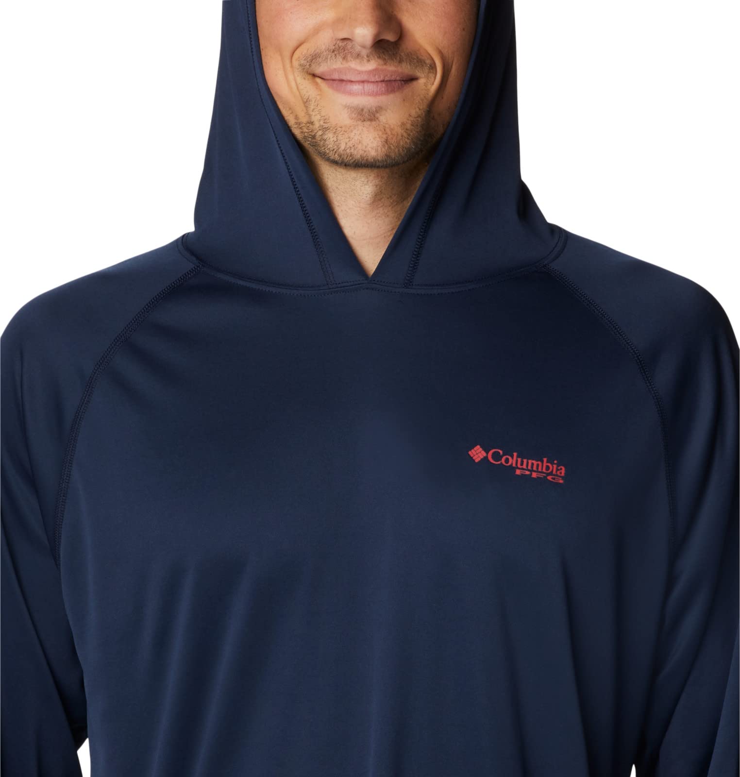 Columbia Men's Terminal Tackle Hoodie, Coll Navy/Sunset Red Logo, Large Tall