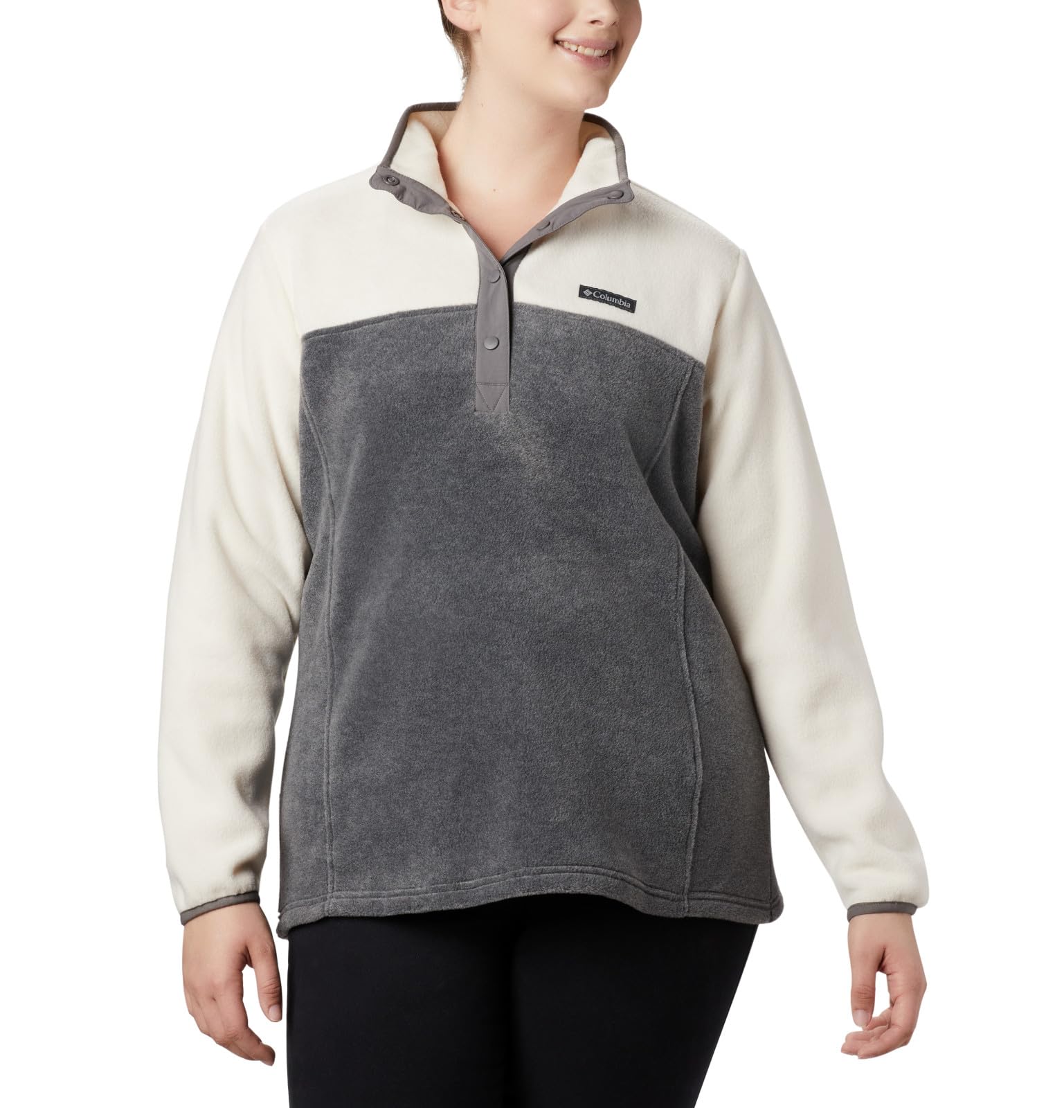 Columbia Women's Benton Springs Half Snap Pull Over II, City Grey Heather/Chalk, X-Large