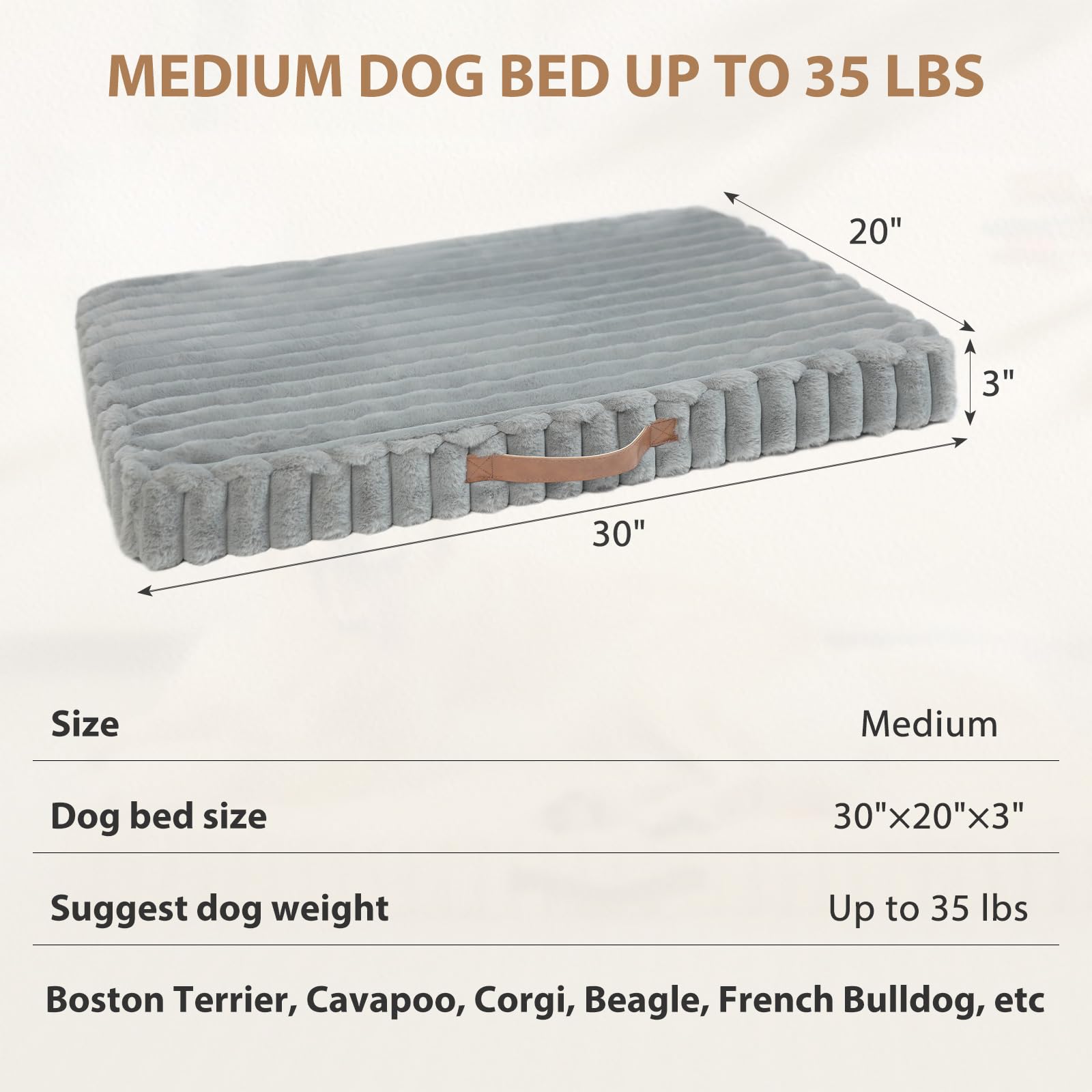 - 【Size Guide】The medium dog bed ( 30"x20"x3") is suitable for medium dogs up to 35 lbs, The classic pet bed mattress design gives your fluffy friend plenty of room to sprawl out and get cozy in any position. If you want your pet to have more room to lie down on the cozy dog bed, A larger dog bed is recommended.