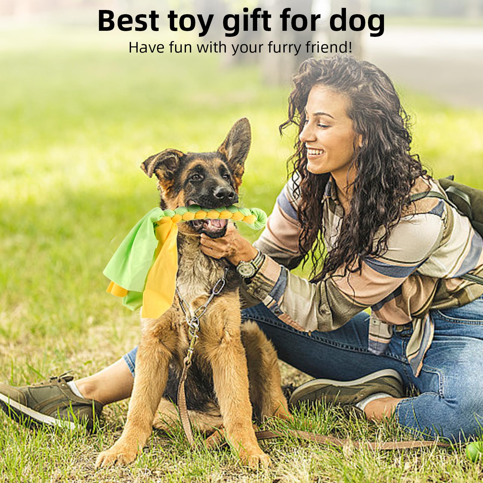 - [More Accessories, More Fun to Play]: Dog rope toys are made of tight multi-colored cotton ropes, plant dyeing, natural and non-toxic, absolutely safe for pets. 1 cotton rope toy and 1 mouse doll toy are used for dog tug of war toy games, and 1 ball toy can be used with dogs to grind their teeth.