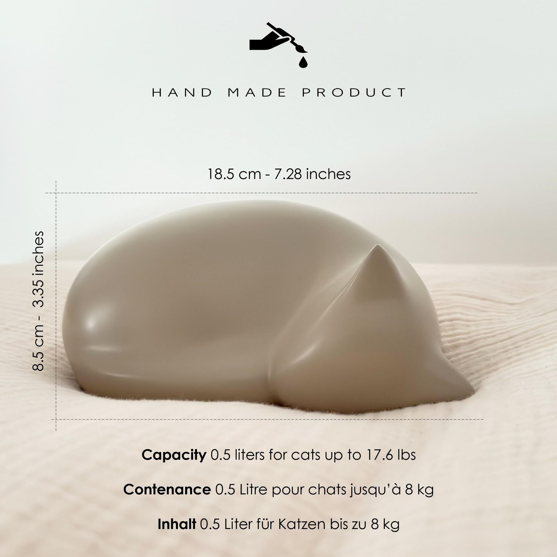 Comemori Sleeping Cat Funeral Urn, Light Taupe (Beige, Sandy)