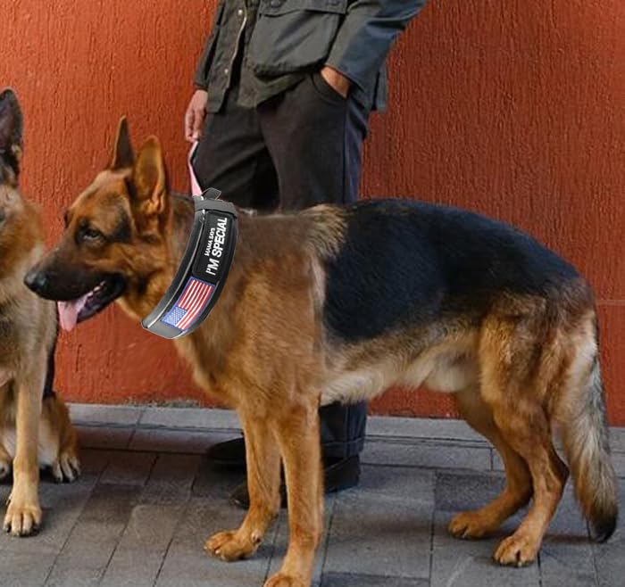 - 【Double Reflective Trips Dog Collar】1080D Nylon tactical dog collar, Double reflective trips of the collar to ensure your dog safety during night walking, hiking,jogging, running, or trips. No-pull Tactical dog collar with D-ring, Military-grade reflective tactical dog collar for medium breeds.