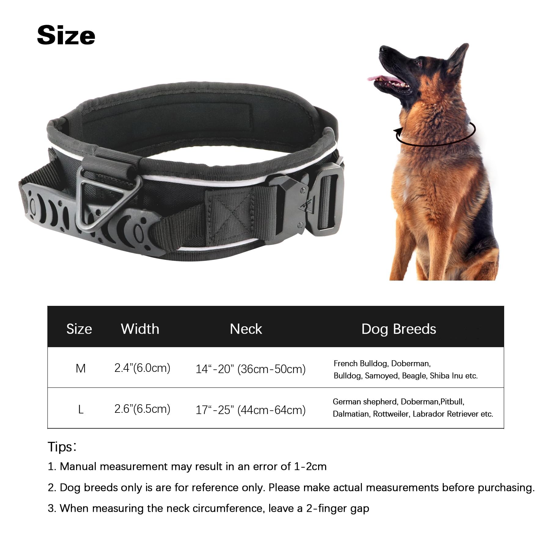 - 【Heavy Duty Dog Collar with Quick-Release Metal Buckle】Tactical dog collar with quick-release metal buckle for hiking, Training,outdoor adventures,etc,metal buckle easy to put on and take off. Tactical collar for hunting dogs, French bulldog, Corgi,pug, dachashund, english bulldog, poodle, beagle etc.