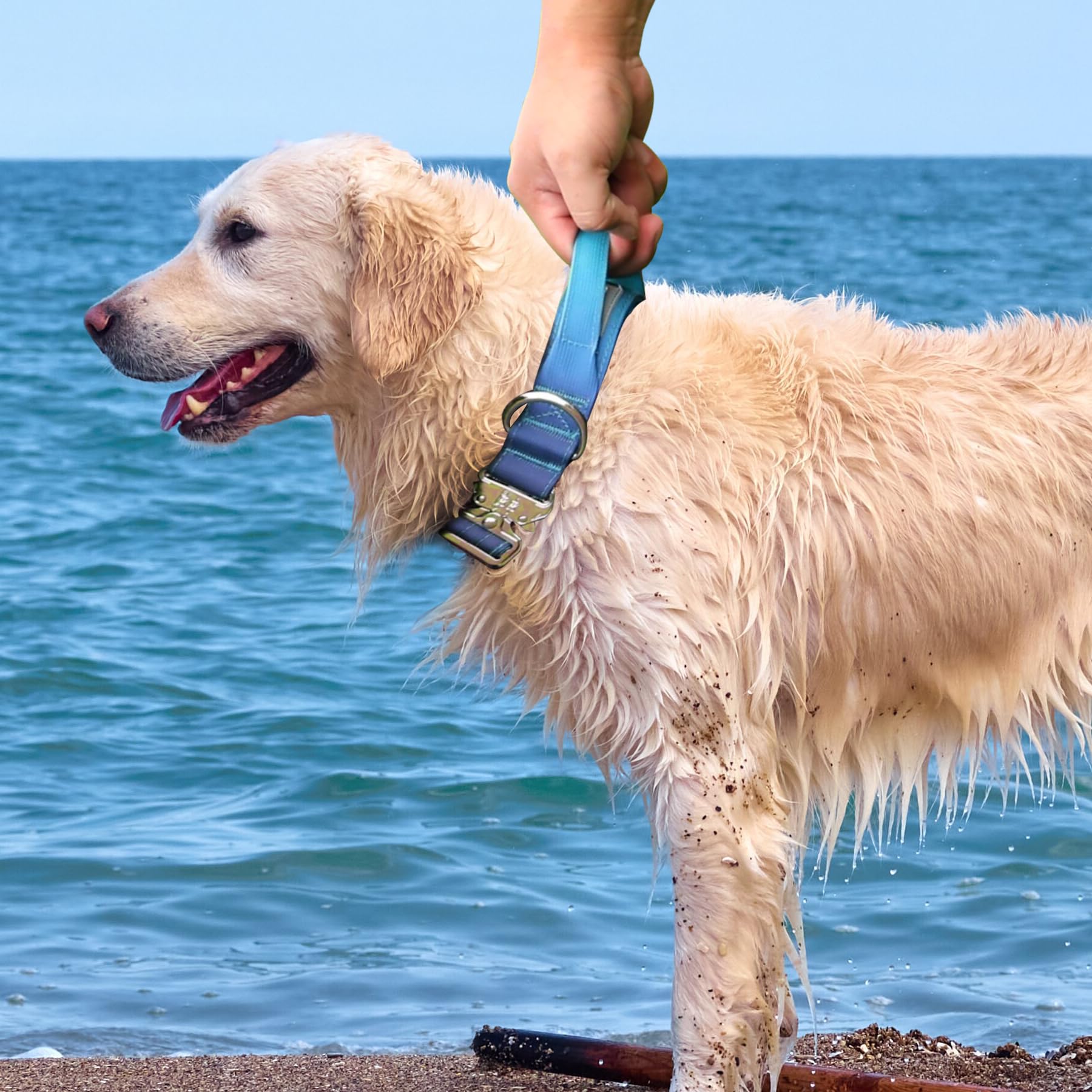 Comfluxe Tactical Dog Collar, Wide Thick Heavy Duty Dog Collar with Handle, Soft Neoprene Padded Military-Grade Nylon Training Collar with Quick Release Metal Buckle for Large Dogs (Blue, M)