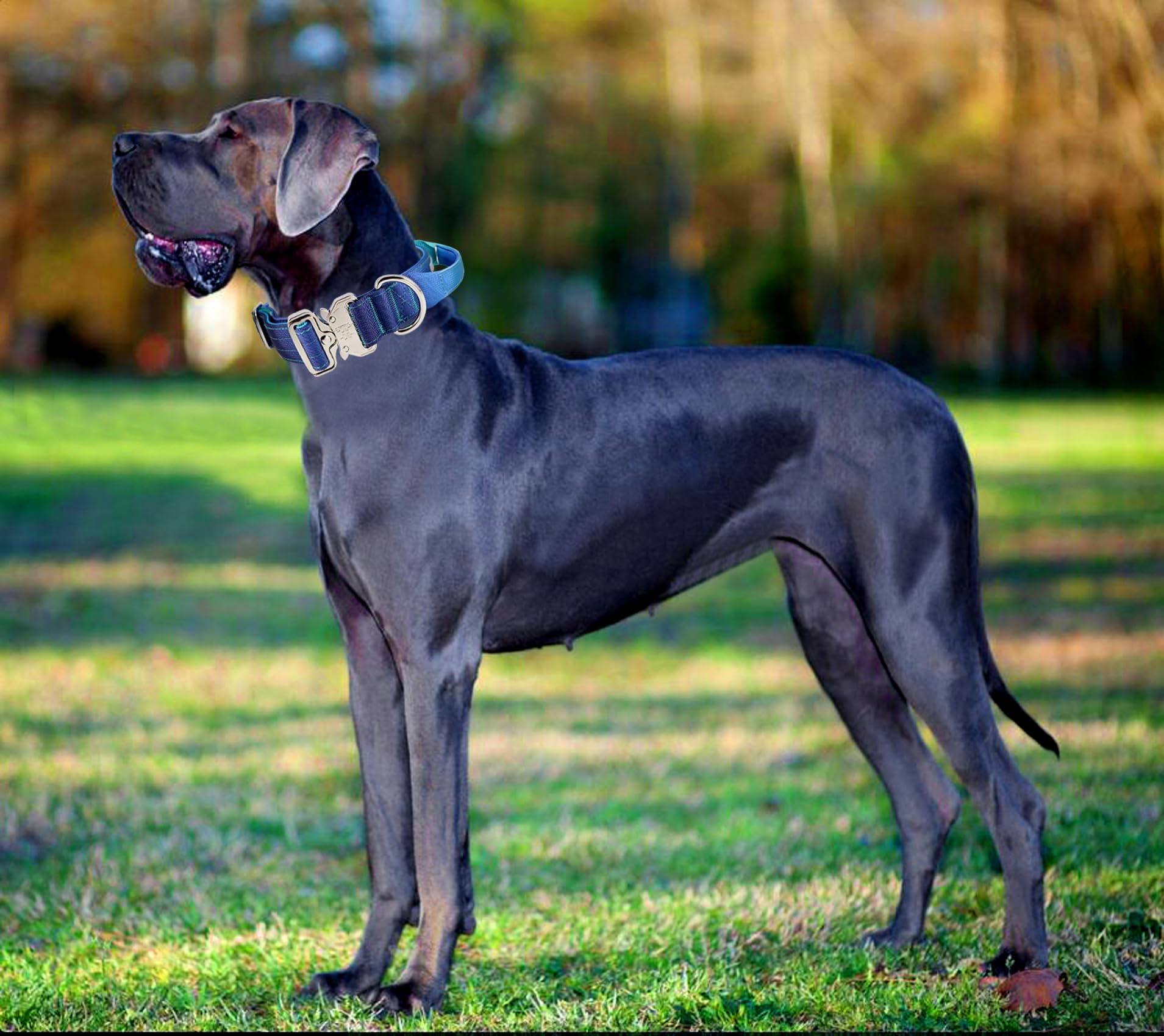 Details: 1.5" Wide Tactical Dog Collar Military Dog Collar with Handle, Adjustable Heavy Duty Dog Collar with Quick-Release Metal Buckle, Training Nylon Dog Collar for girl boy dogs. 2 sizes(M: 12.6“-16” (32cm-41cm) L:16“-22.8” (41cm-58cm)) suit for Medium and Large Dogs. 3colors:Pink gradient dog collar,Blue gradient dog collar, Black dog collar.