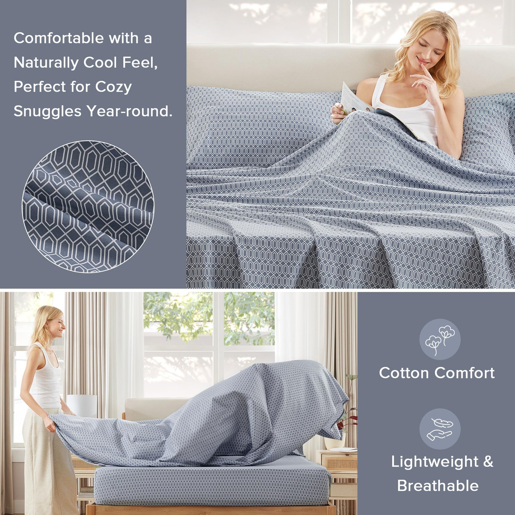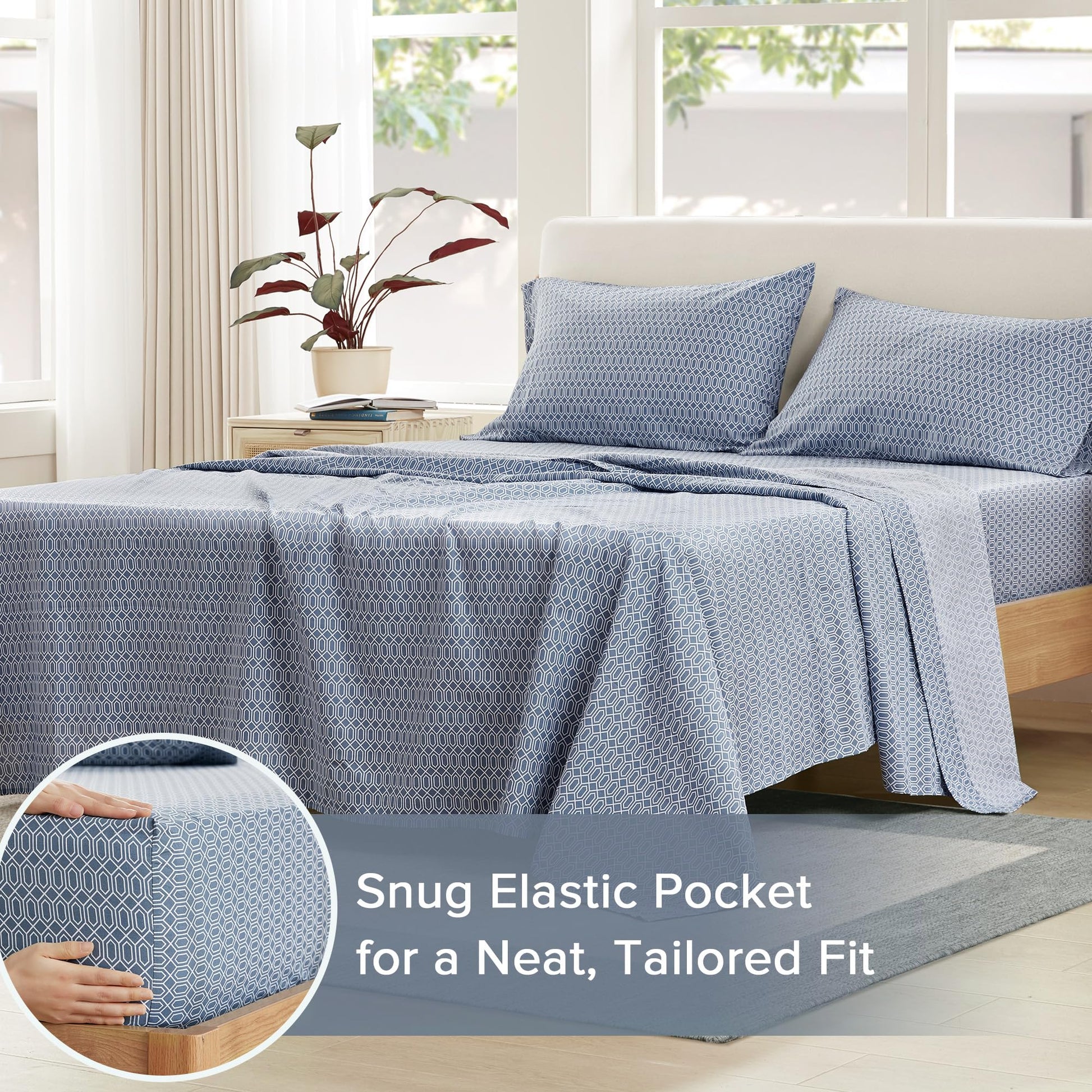 Comfort Spaces 100% Cotton Sheets Full, Breathable, Naturally Cool Cotton Sheets, Soft Cotton Bed Sheets with 14" Elastic Pocket Fits up to 16" Mattress, All Seasons Sheet Set, Diamond Blue 4 Piece