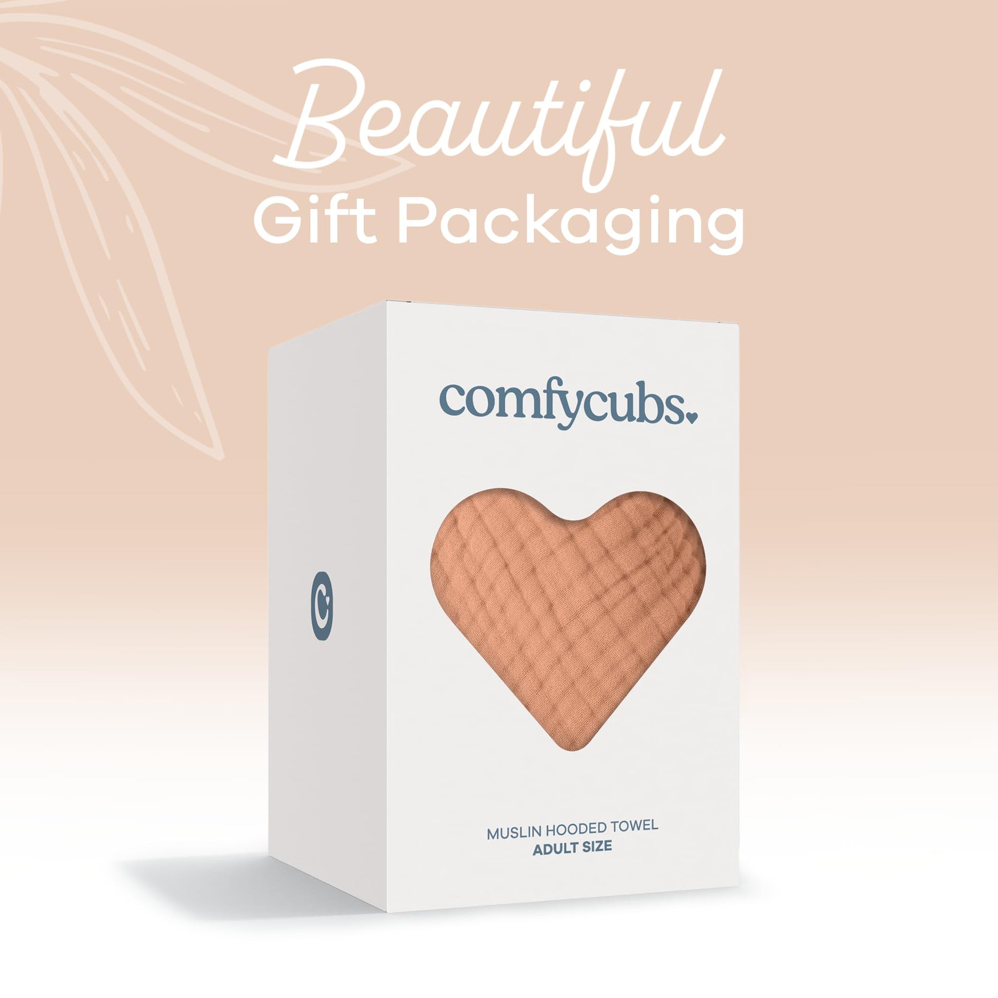 Comfy Cubs Adult Blanket - Hooded Towel, Muslin Cotton - Large, Absorbent Bath Towels - for Beach & Bath - Stylish Blanket with Hood, Perfectly Oversized Hooded Towel for Grown Ups, Caramel
