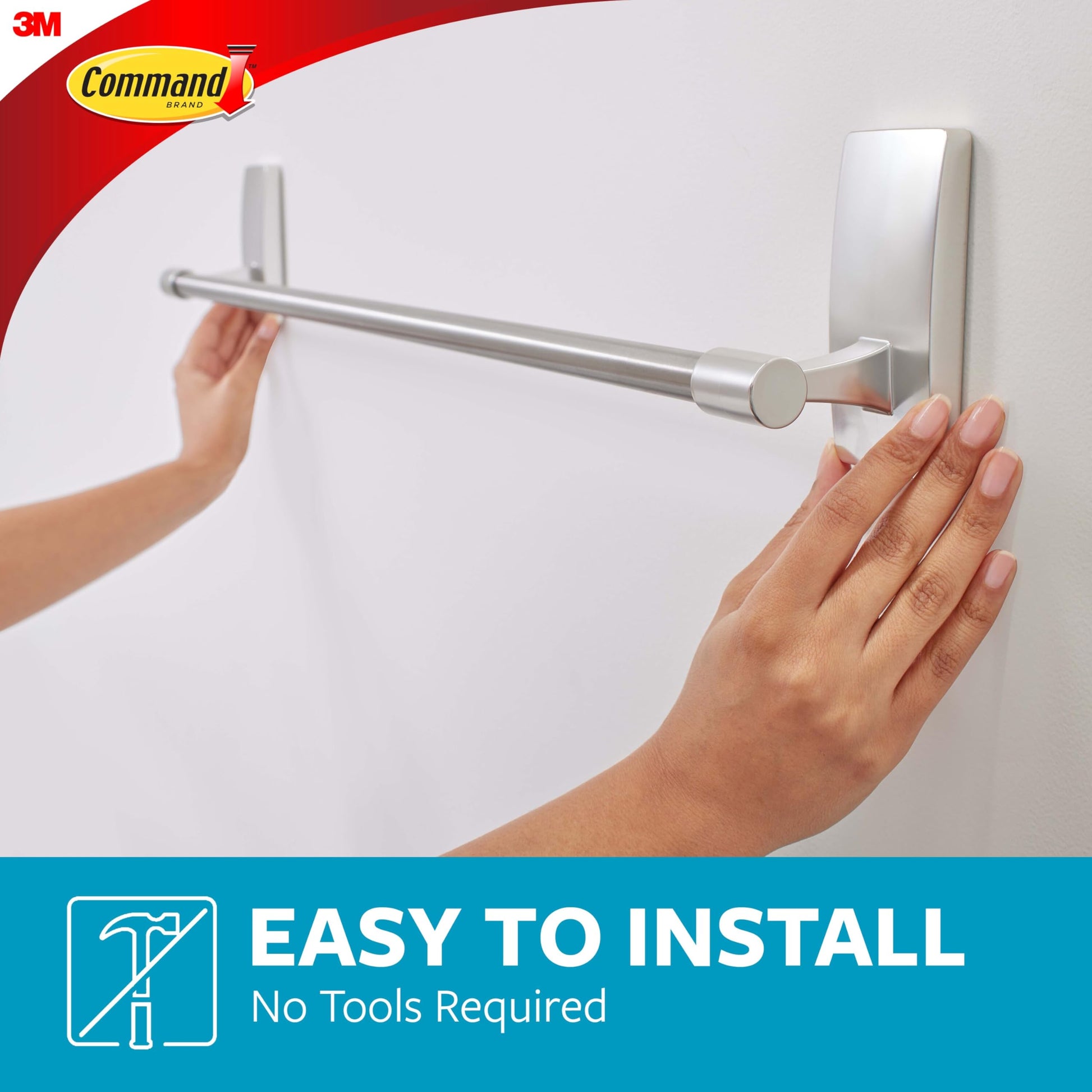 Command Bath Satin Nickel Towel Bar with Water Resistant Command Strips, Bathroom Organizer, 24 in Bar Length Holds up to 10 lbs