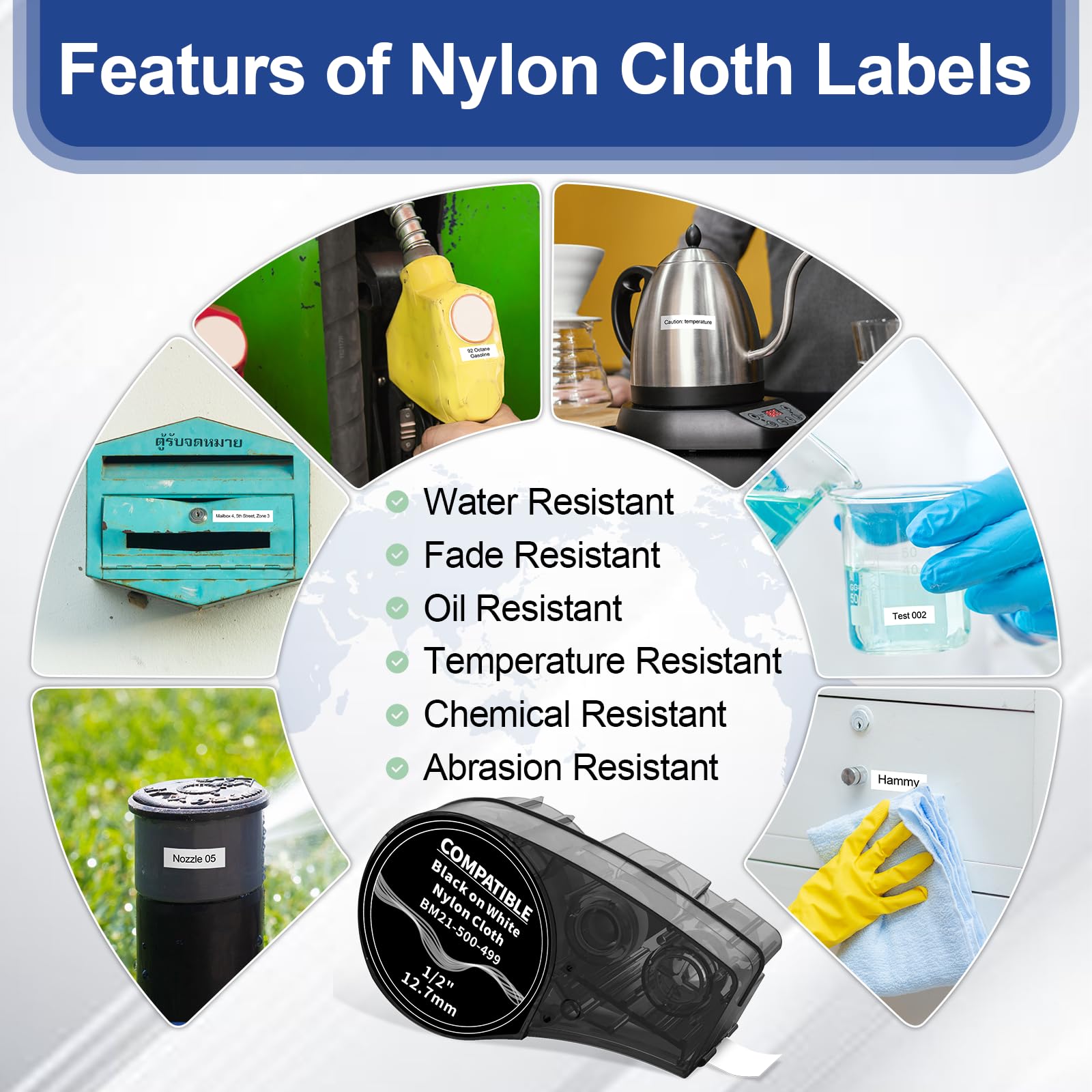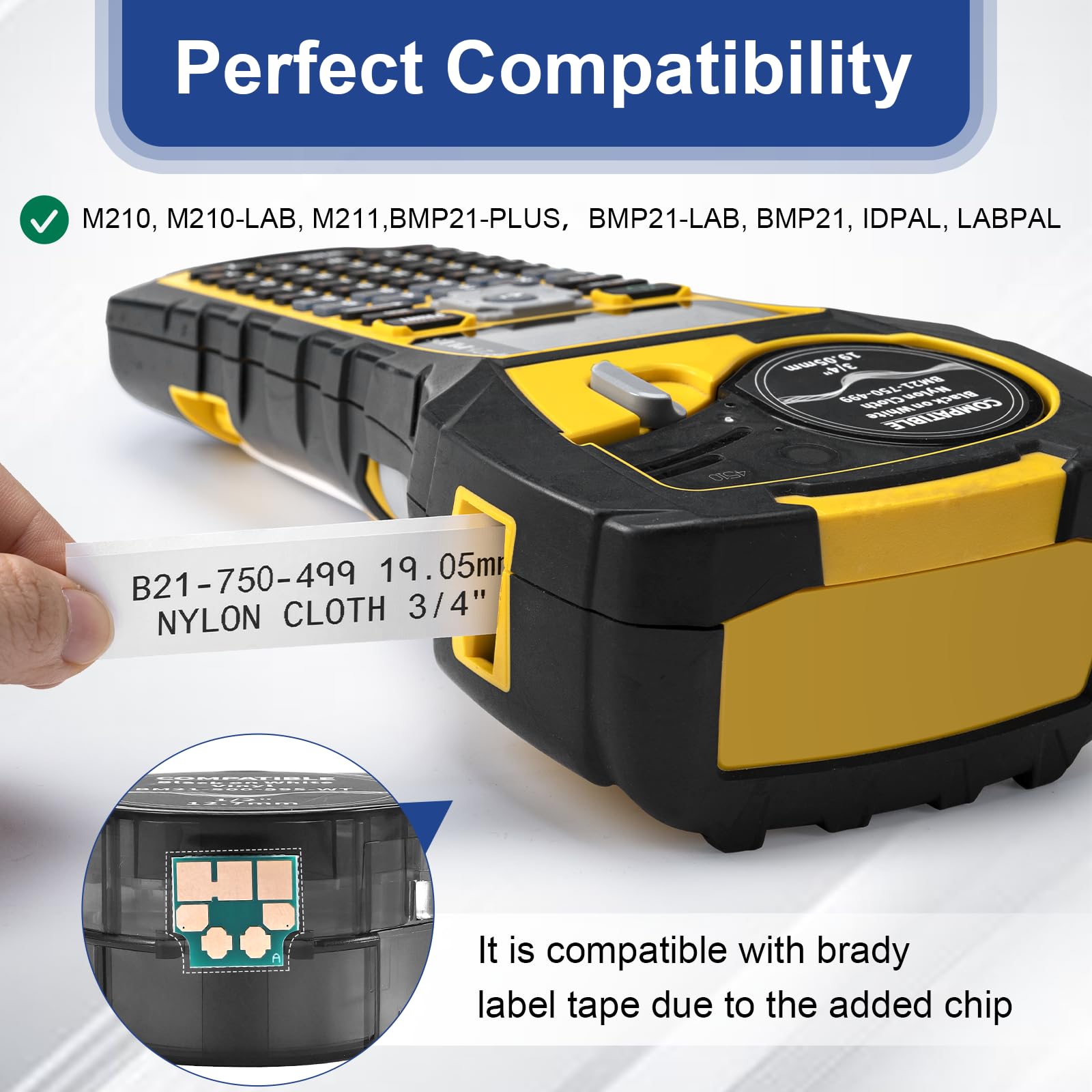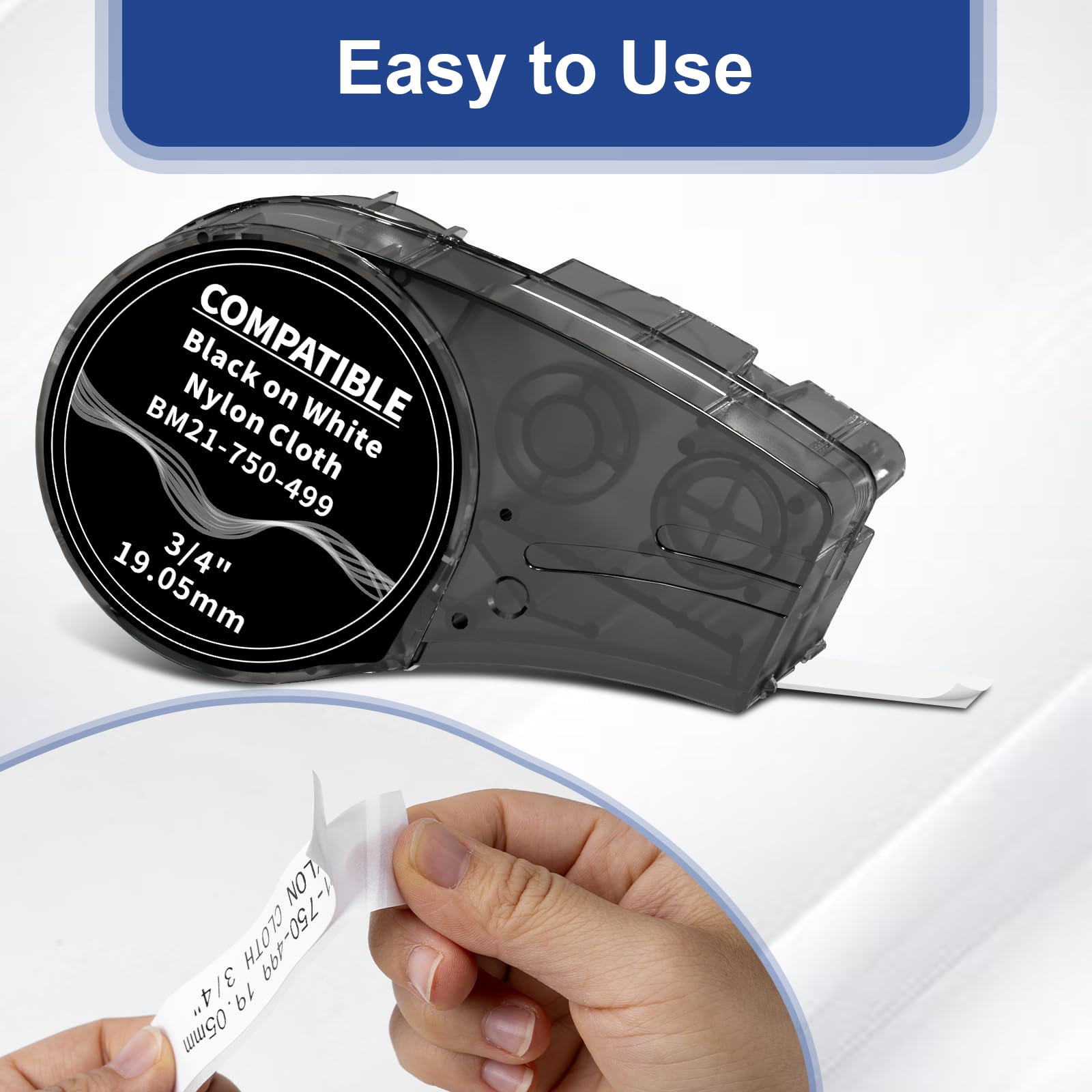 - Package includes: 3-pack compatible M21-750-499 black on white 3/4” nylon cloth film label tapes. Width: 19.05mm (0.75 inch), Length: 4.88m (16 feet) for each label tape, Color: Black Print on White tape