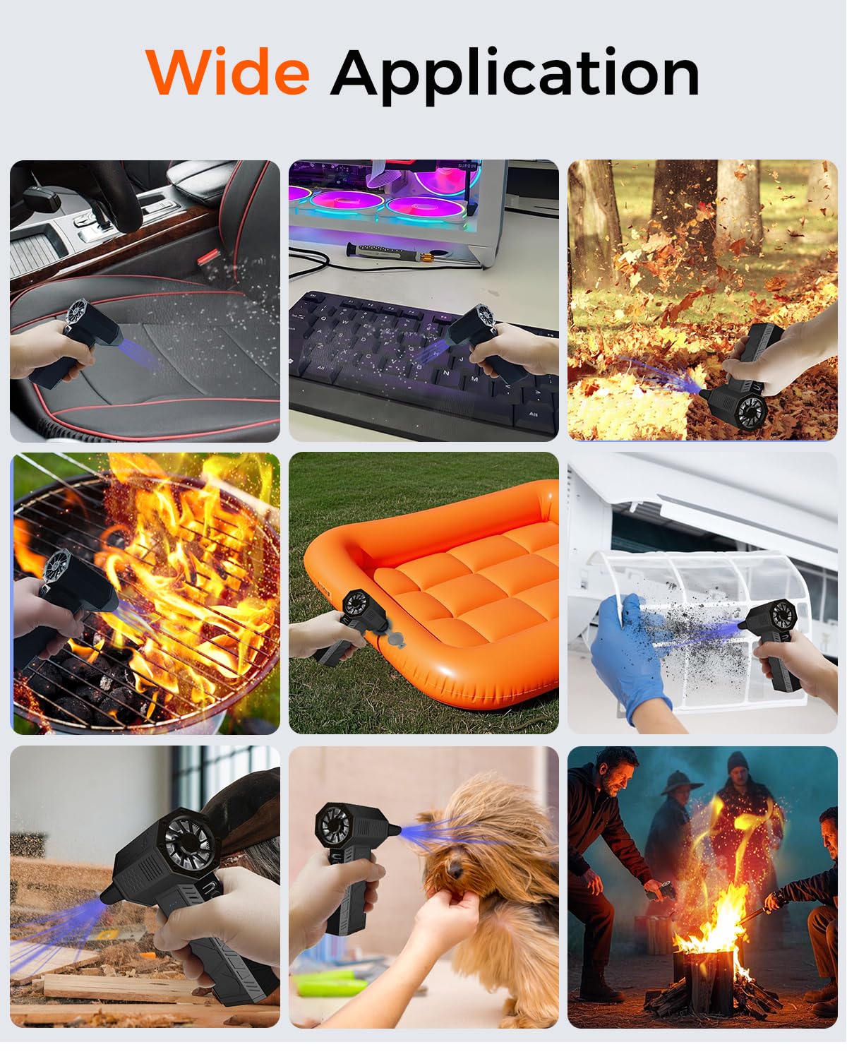 - Wide Applications for Home and Outdoor Use - The KONPAYDE Turbo Dryer Blower is a versatile tool for everyday use. Clean computers, keyboards, cameras, and home appliances with ease. Use it as a jet blower for picnic fires, or to inflate lifeboats and outdoor equipment. It’s also a mini air duster for camera lenses and gadgets, making it your go-to companion for a cleaner and more efficient lifestyle.